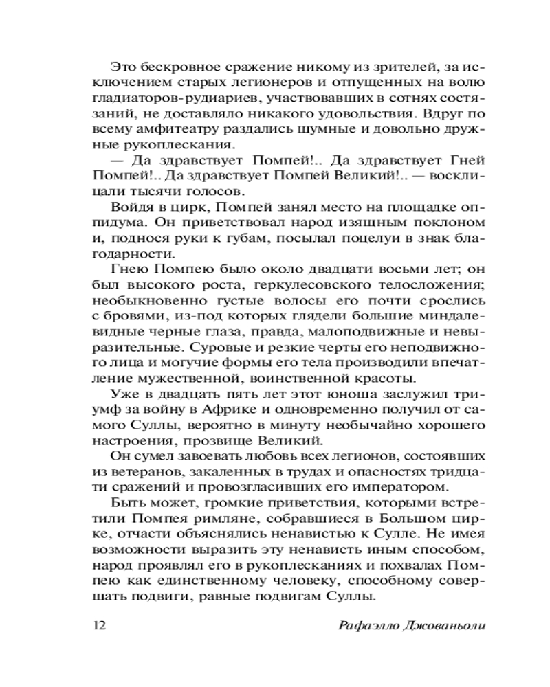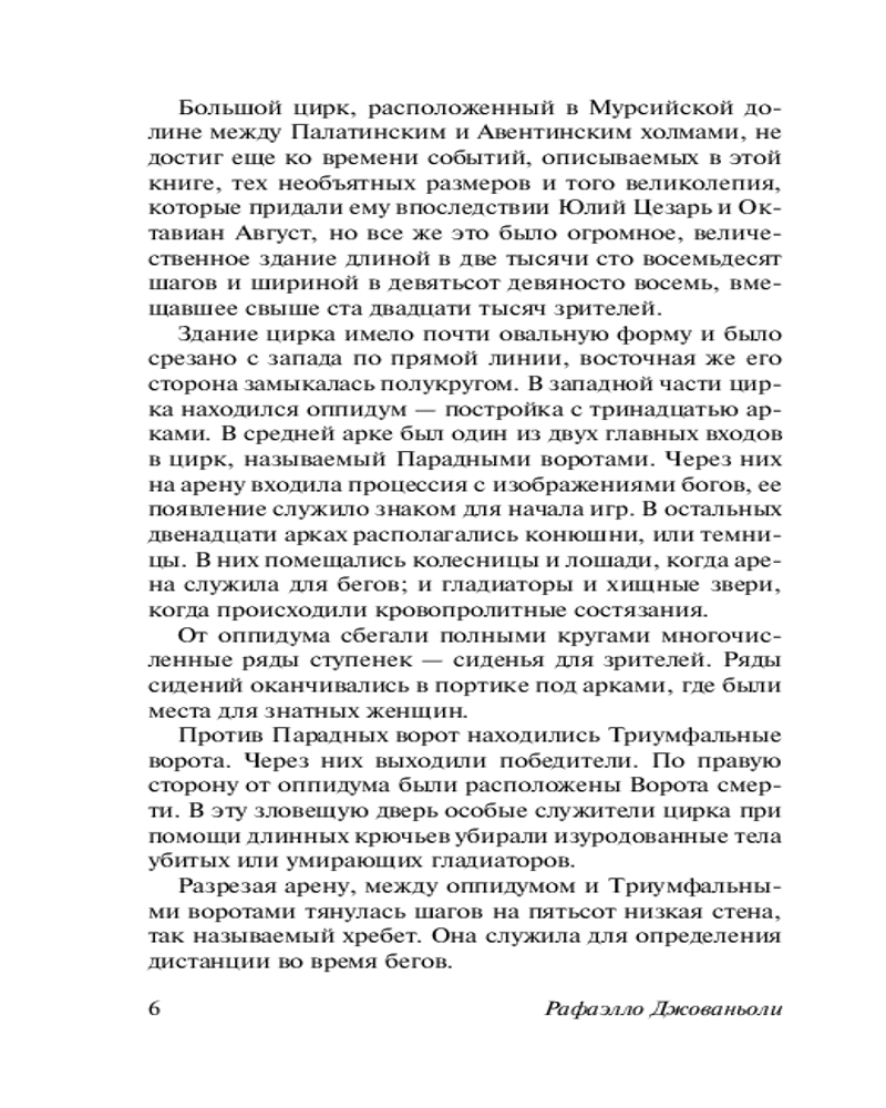 | Рафаэлло Джованьоли — популярный итальянский романист-историк. Джованьоли, прекрасный знаток римской истории, принадлежит к тому поколению итальянской либерально-буржуазной профессуры, которое начало свою деятельность в эпоху войн за объединение Италии. В своей поэтике Джованьоли следует романтической традиции. |