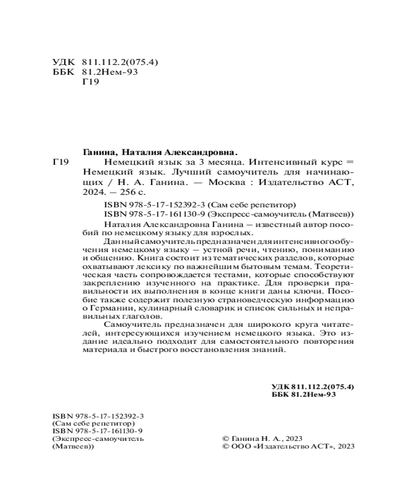 💳 Оплатить за товар можно при получении 🇰🇿 Есть бесплатная доставка по Казахстану от 1 дня 🎁 Копите бонусы с каждой покупки Серия: Экспресс-самоучитель (Матвеев) Наталия Александровна Ганина — известный автор пособий по немецкому языку для взрослых. |