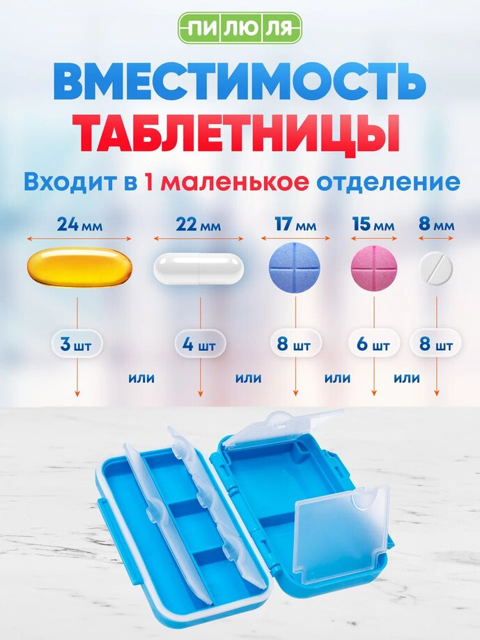 💳 Оплатить за товар можно при получении 🇰🇿 Есть бесплатная доставка по Казахстану от 1 дня 🎁 Копите бонусы с каждой покупки Таблетницы предназначены для компактного и упорядоченного хранения лекарственных средств или витаминов. Компактная Таблетница «Аптечка» разработана специально для активных людей, которым необходимо иметь при себе и время от времени принимать лекарства и витамины на работе или в дороге. |