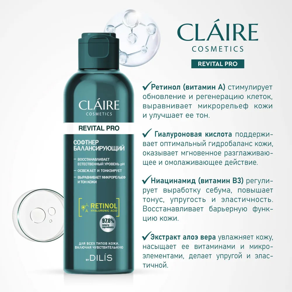 Claire Cosmetics Софтнер для лица балансирующий+18 увлажняет лёгкая текстура не стягивает приятный аромат