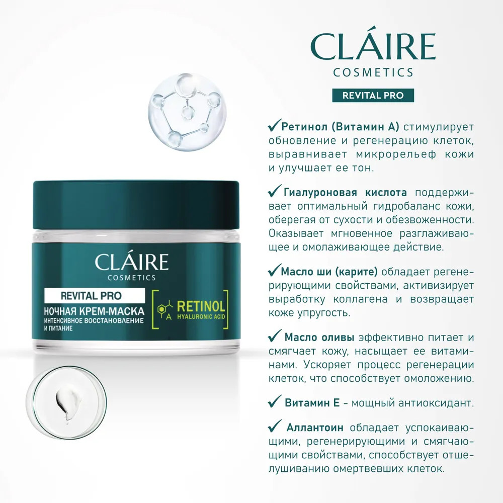 Claire Cosmetics Крем-маска для лица ночной «Интенсивное восстановление и питание»