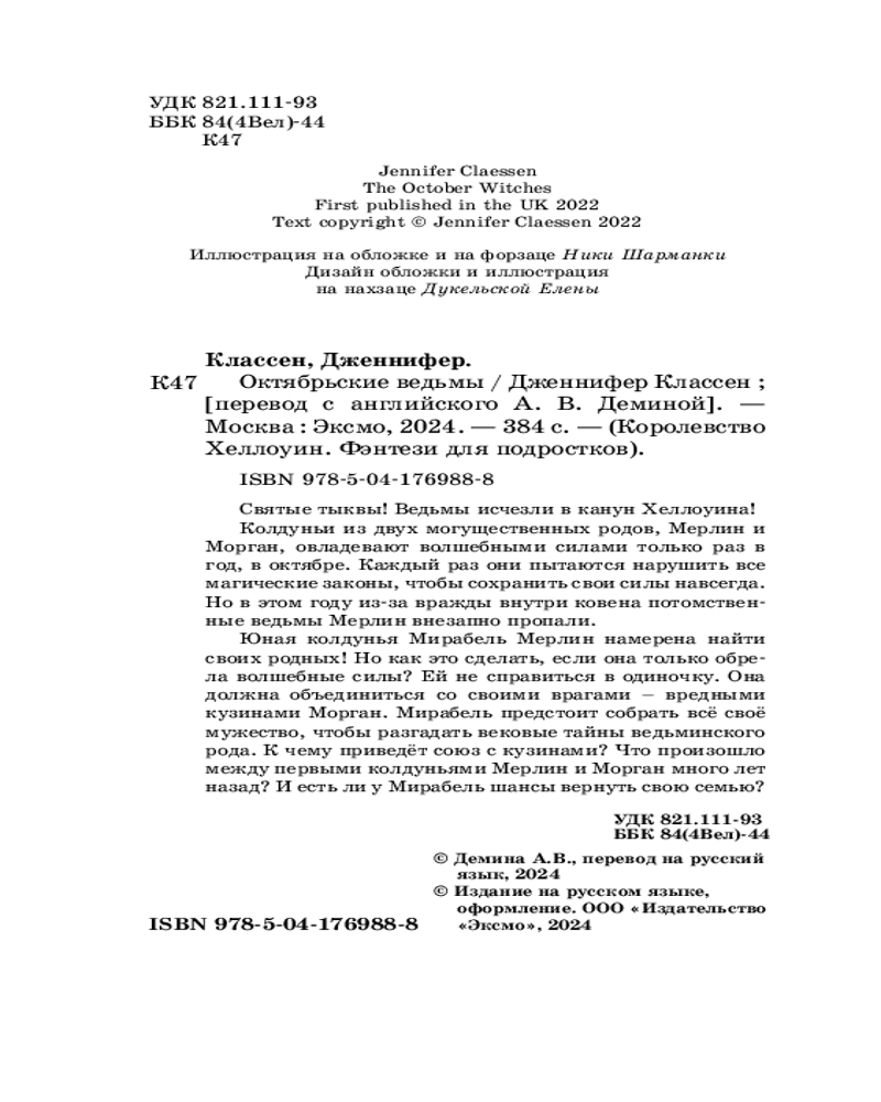 В данный момент этот товар отсутствует в продаже. Возможно, у нас найдется аналогичный или похожий товар здесь. Серия: Детск. Королевство Хэллоуин. Фэнтези для подростков Новинка! Книга входит в ТОП-100 магического фэнтези для подростков на Амазоне. В этой истории нет клише и привычных шаблонов о мире магии!