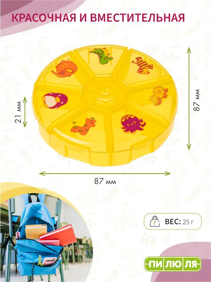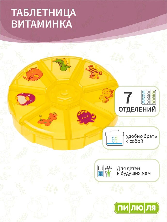 💳 Оплатить за товар можно при получении 🇰🇿 Есть бесплатная доставка по Казахстану от 1 дня 🎁 Копите бонусы с каждой покупки Таблетницы предназначены для компактного и упорядоченного хранения лекарственных средств или витаминов. Яркий дизайн таблетницы «Витаминка» разработан специально для детей и будущих мам. Имеет 7 отделений, крышка каждого из которых украшена изображением забавного животного. |