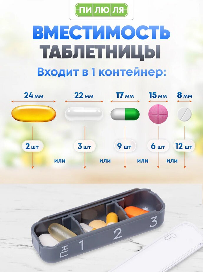 Потрясающая! Взяла с собой в поездку. Поместились даже очень большие витамины
