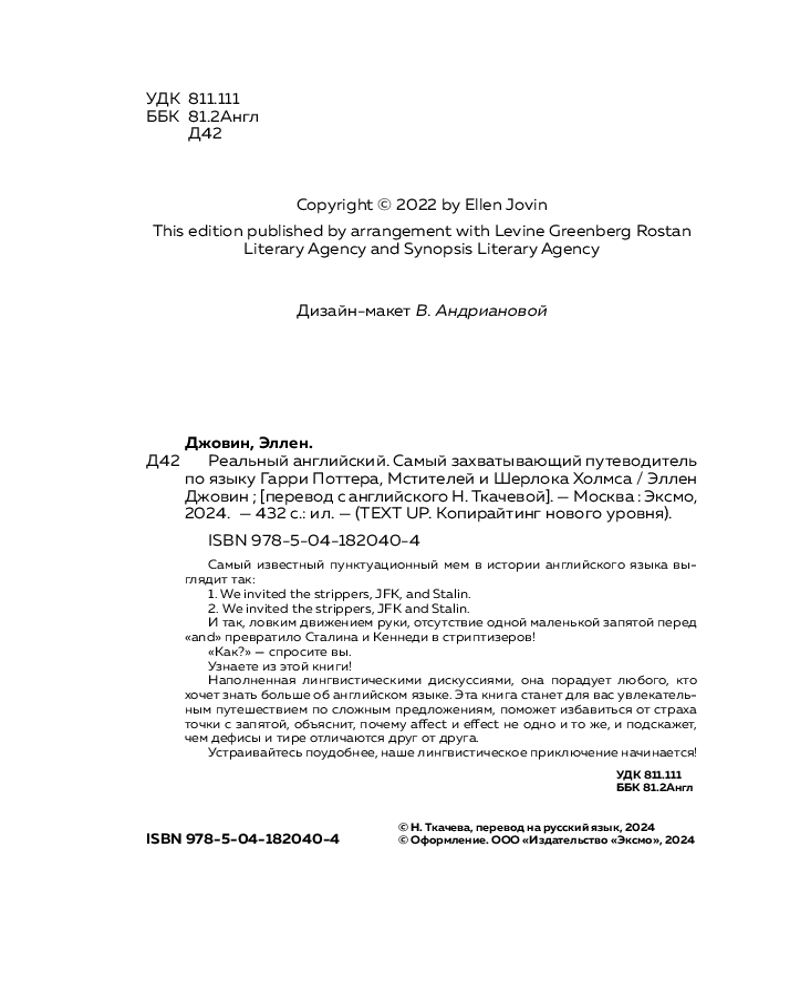 💳 Оплатить за товар можно при получении 🇰🇿 Есть бесплатная доставка по Казахстану от 1 дня 🎁 Копите бонусы с каждой покупки Серия: TEXT UP. Копирайтинг нового уровня Самый известный пунктуационный мем в истории английского языка выглядит так: «We invited the strippers, JFK, and Stalin» и «We invited the strippers, JFK and Stalin». |