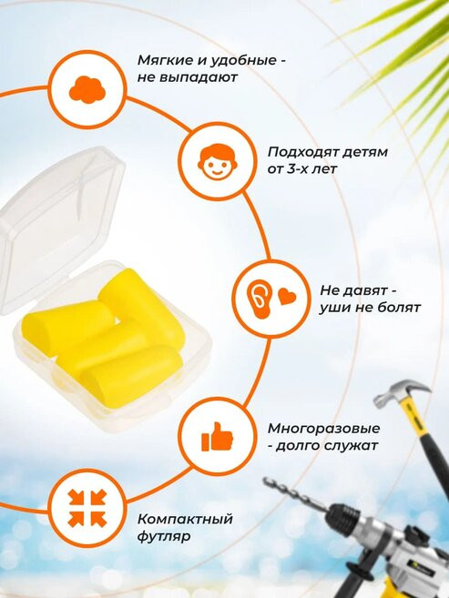 💳 Оплатить за товар можно при получении 🇰🇿 Есть бесплатная доставка по Казахстану от 1 дня 🎁 Копите бонусы с каждой покупки Беруши изготовлены из вспененного полиуретана. Обеспечивают надежную защиту органов слуха от избыточного воздействия транспортных, бытовых и производственных шумов. Идеально подходят для сна и отдыха, путешествий, учебы и занятий, требующих сосредоточения. Защищают ушной канал от пыли и песка при сильном ветре. Легко адаптируются к индивидуальной форме ушного канала и хорошо восстанавливаются после деформации. Для многоразового использования. Для гигиенического хранения беруши упакованы в пластиковый контейнер. |