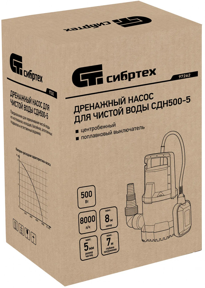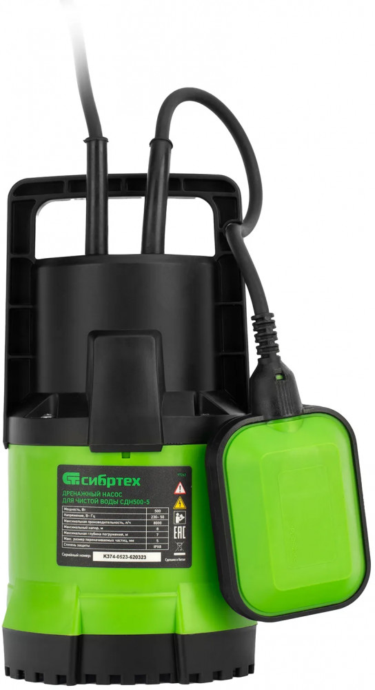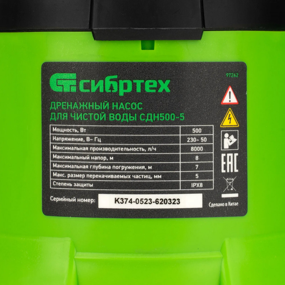 Сибртех Насос дренажный Сибртех СДН500-5-20% +583 внешний вид легкость подключения работает хорошо низкая мощность