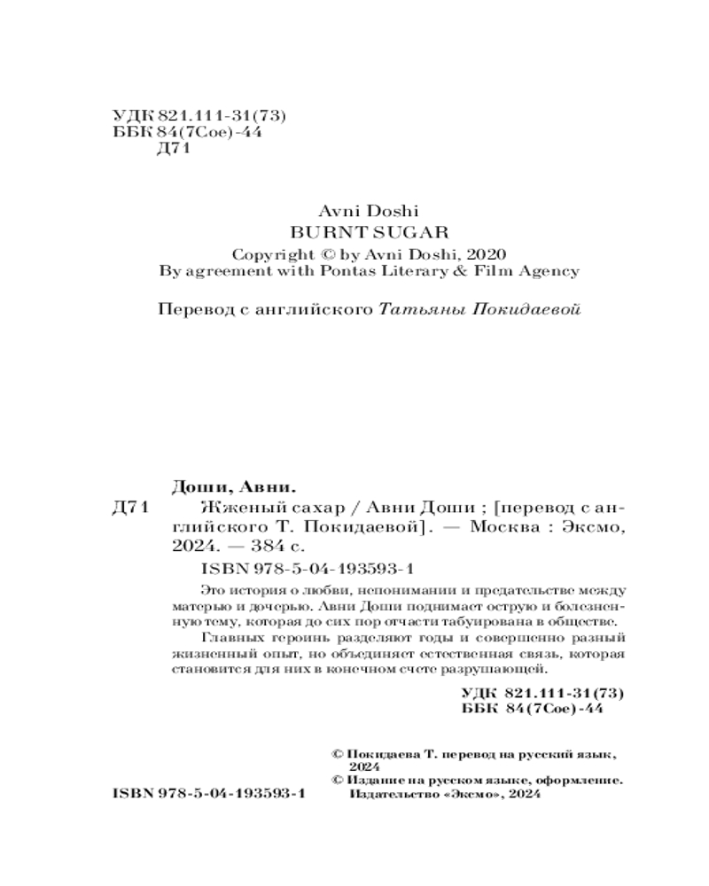 Это история о любви, непонимании и предательстве между матерью и дочерью. Авни Доши поднимает острую и болезненную тему, которая до сих пор отчасти табуирована в обществе.