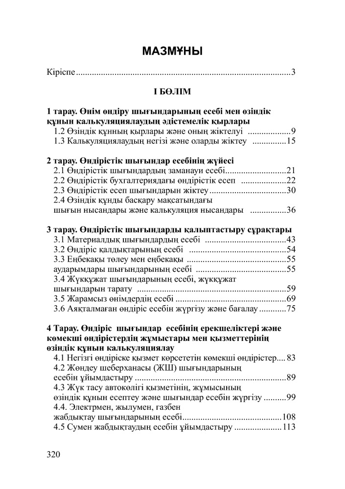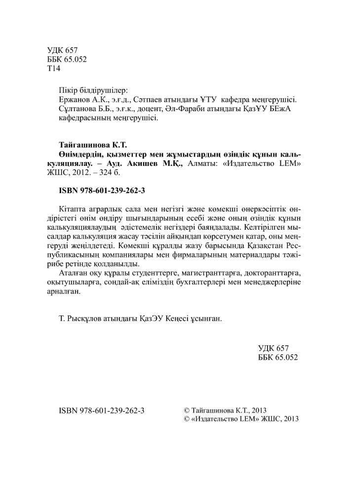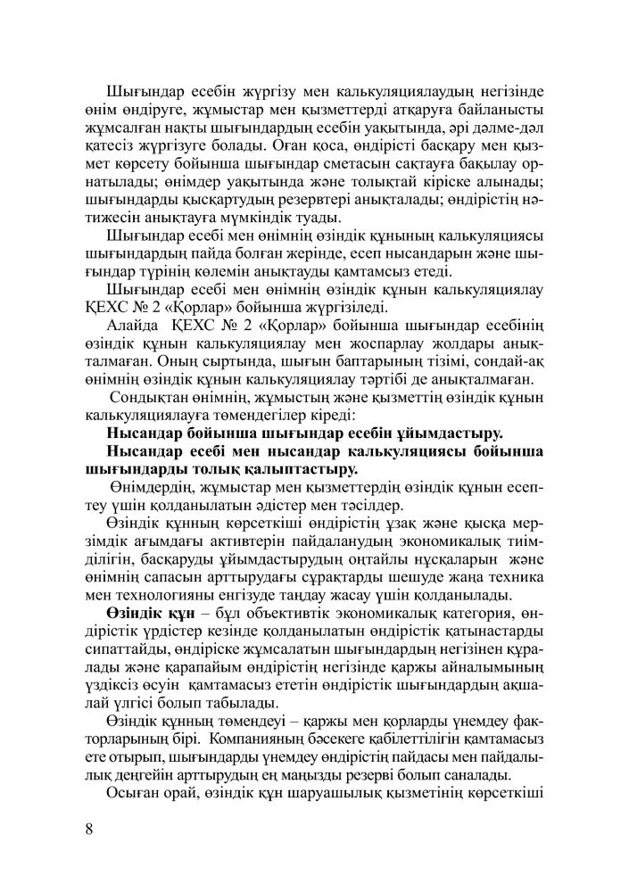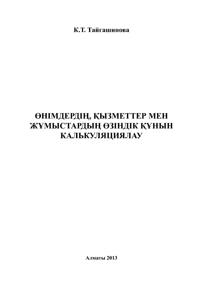 Өнімдердің, қызметтер мен жұмыстардың өзіндік құнын калькуляциялау. (Калькуляция себестоимости продукции, выполненных услуг и работ. Уч. Пособие)+130