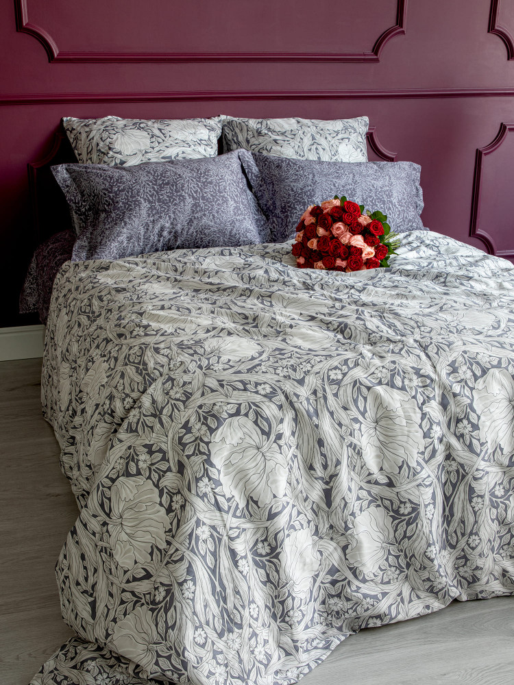 Нежное постельное белье «Amore» выполнено в спокойных оттенках с многообразием растительного орнамента. Рисунок содержит сплетения с витиеватым флористическим принтом, в центре которых располагается роскошный цветок. В основе создания узора лежат повторы отдельных деталей, а также их ритмы и чередования. Такие орнаменты позволяют разнообразить тихий и однотонный дизайн любого помещения, придавая ему жизненно важную активность. Комплект отлично впишется в интерьер с любым стилем: от классического до современного. Идеально в подарок!