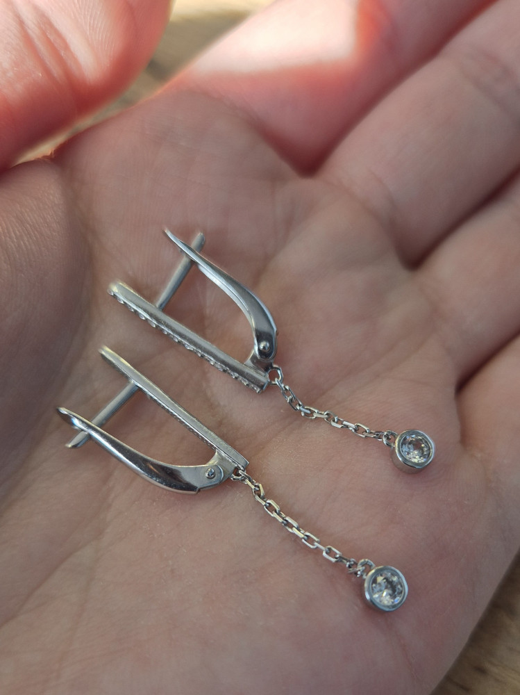 Милые миниатюрные сережки, легкие. Крепкая застежка. Оригильные: одна серьга с камушками, другая без них.