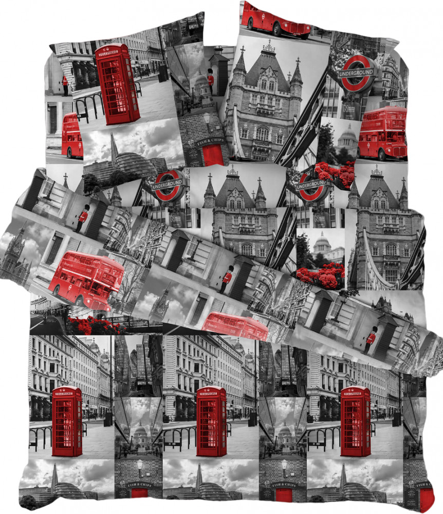 Постельное белье London bridge, вдохновленный атмосферой Англии, дополнит интерьер в лондонском стиле. Знаменитая английская телефонная будка станет ярким акцентом в спальне. Комплект выполнен из полисатина. Полисатин — это синтетическая ткань, которая формируется посредством сатинового переплетения полиэфировых нитей. При сатиновом плетении выполняется скрутка волокон двойным кручением — за счет этого материал обретает характерный блеск и прочность. Ткань приятная на ощупь, мягкая, износостойкая.