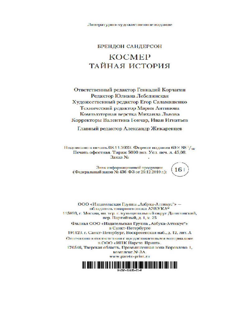 В издательстве уделяют особое внимание тщательной редакции и качественной печати каждой книги. Высококачественная бумага, четкая печать и прочный переплет делают книги «Азбуки» удовольствием... |