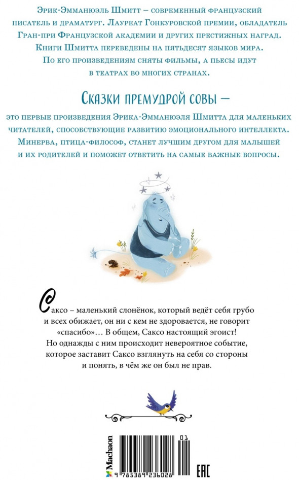 💳 Оплатить за товар можно при получении 🇰🇿 Есть бесплатная доставка по Казахстану 🎁 Копите бонусы с каждой покупки Серия: Чудесные книжки для малышей Сказки премудрой совы — это первые произведения Эрика-Эмманюэля Шмитта для маленьких читателей, способствующие развитию эмоционального интеллекта. Минерва, птица-философ, станет лучшим другом для малышей и их родителей и поможет ответить на самые важные вопросы. |