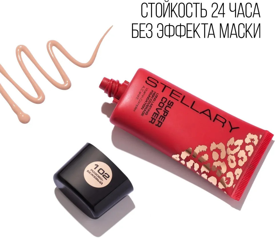 Stellary Крем тональный выравнивающий «Super cover», тон 102 Розово-бежевый