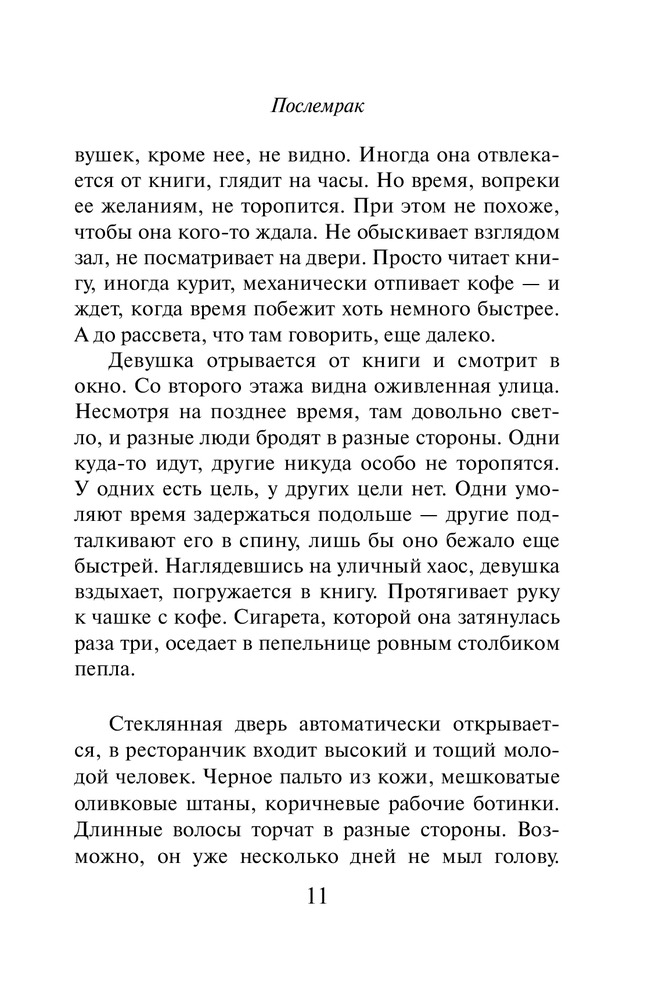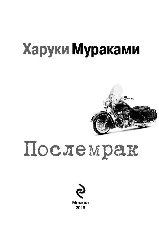 ПослемракВ данный момент этот товар отсутствует в продаже. Возможно, у нас найдется аналогичный или похожий товар здесь. Серия: Мураками-мания (обложка) Разные люди бродят в разные стороны. Одни |