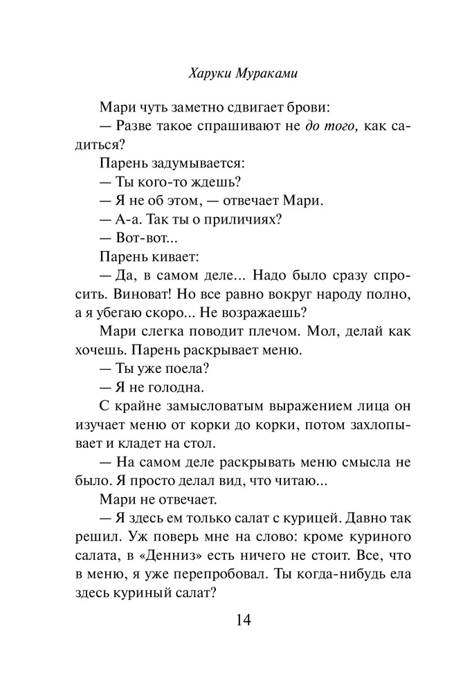 Теперь одна из любимых книг Харуки Мураками! Завораживающая история со спокойным сюжетом, читается легко и не принужденно.