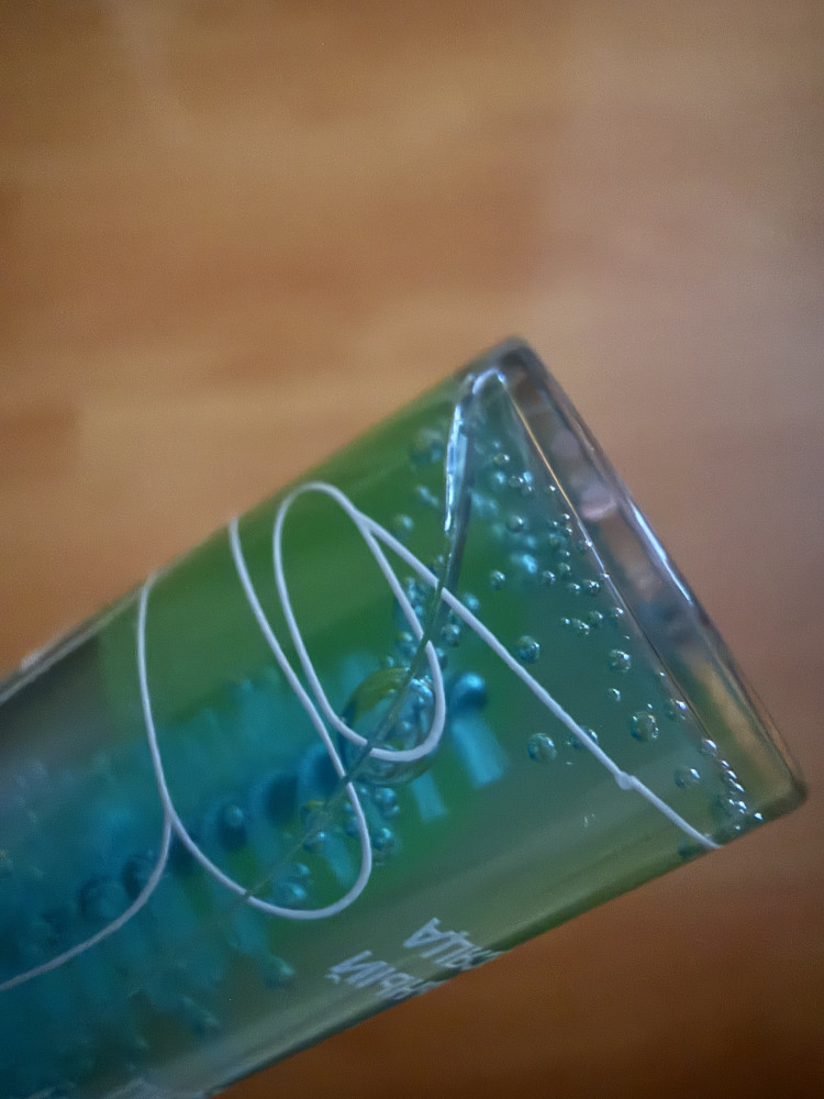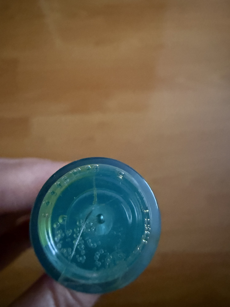 Дома при распаковке обнаружила, что корпус липкий, промыв, увидела, что он треснут. Гель вытекает. Пришлось выкинуть(