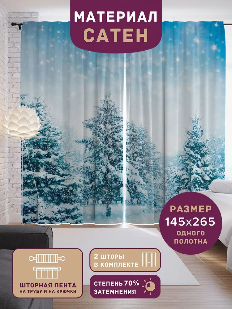 JoyArty Комплект штор с фотопечатью «Зима в лесу»