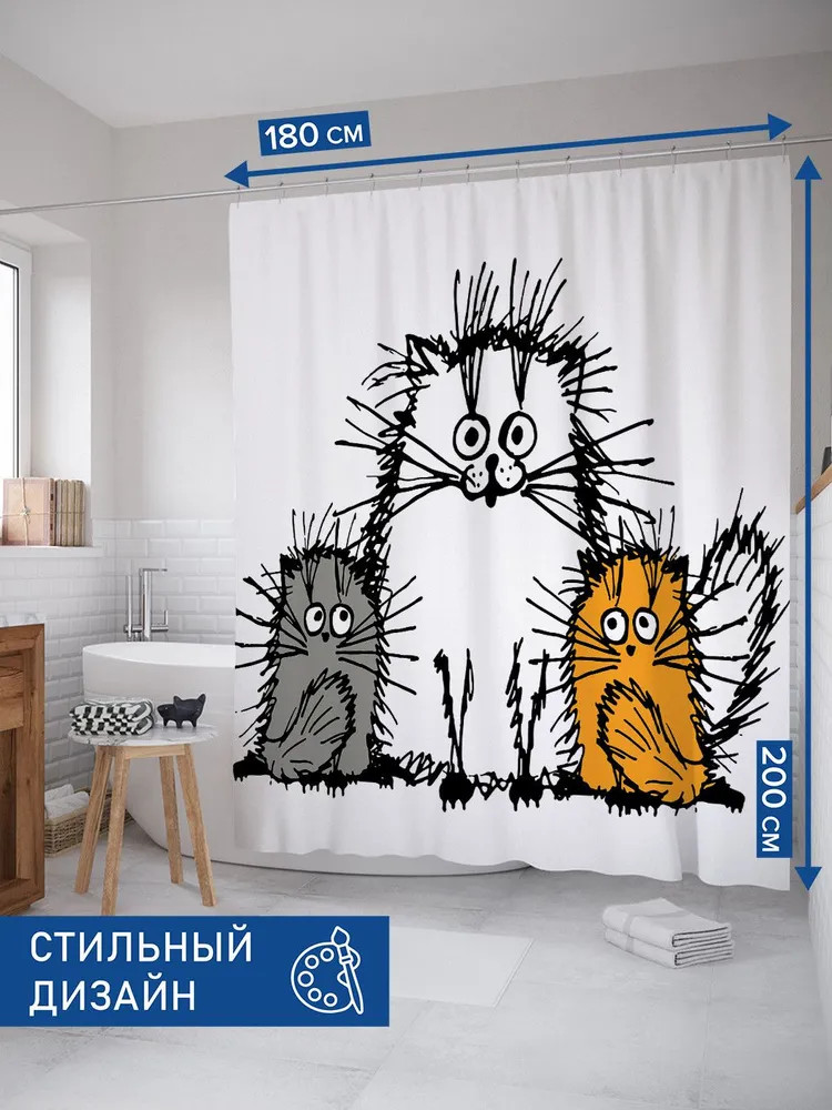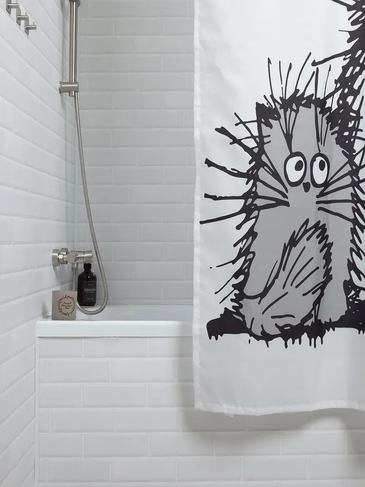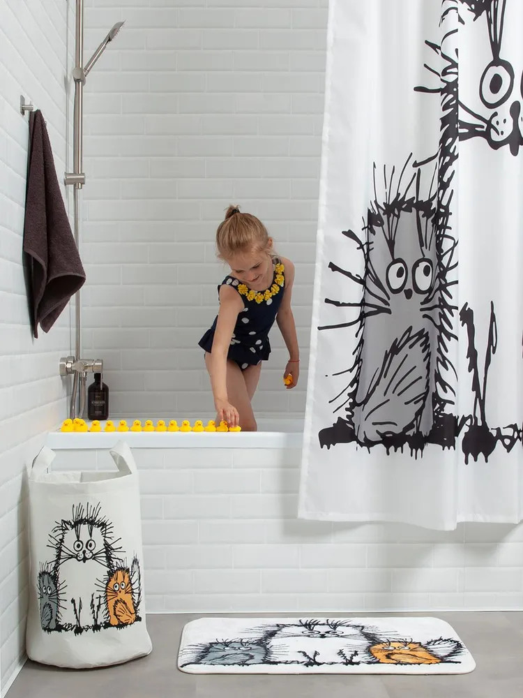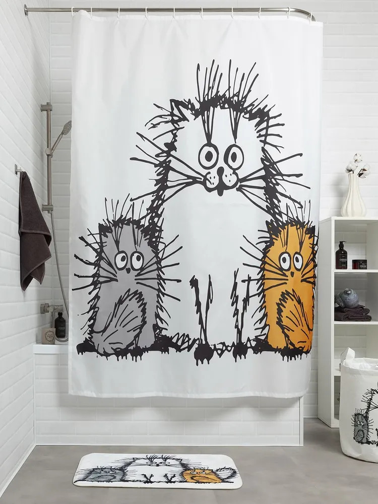 Поднимают настроение, когда входишь в ванную. Потому что у нас 2 кошки, уже много лет, такие же смешные, как на шторке.