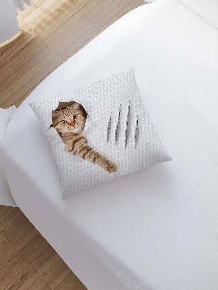 JoyArty Наволочка декоративная «Кот с царапиной»-20% +96 двусторонний рисунок яркий рисунок плотный материал замочек