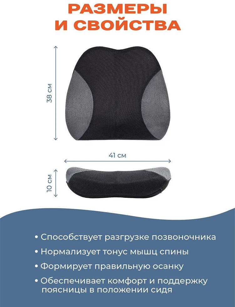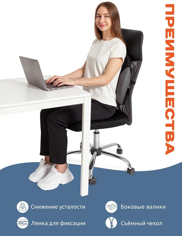 Невропатолог посоветовал купить подушку для поясницы. Жалею, что не знала об этом раньше. Удобная в меру мягкая подушка, можно закрепить на любой стул со спинкой. Поддерживает спину, теперь нет дискомфорта в спине и пояснице.