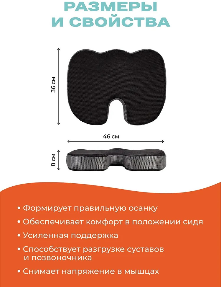 Заказала на основе отзывов и не пожалела. Действительно,осень хорошая, удобная подушка. Принимает форму при посадке, в меру жёсткая, очень удобно на ней сидеть. Надеюсь, что проблему болей в пояснице при долгом сидении, решит или облегчит. Спасибо!