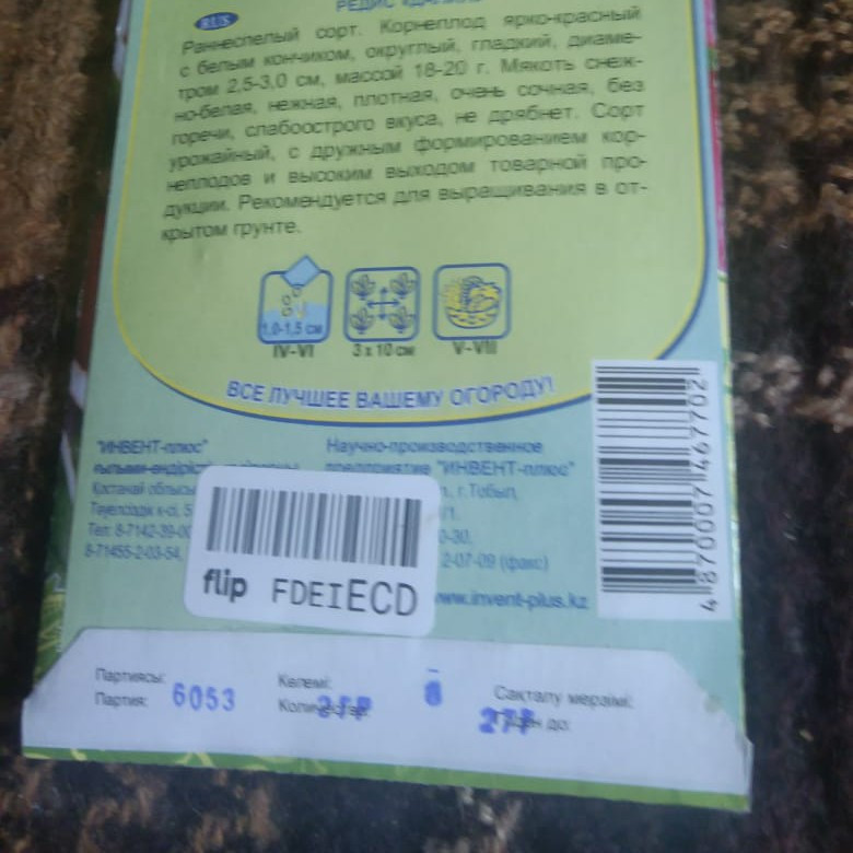 💳 Оплатить за товар можно при получении 🇰🇿 Есть бесплатная доставка по Казахстану от 1 дня 🎁 Копите бонусы с каждой покупки Среднеранний сорт. От всходов до технической спелости 25-30 дней. Предназначен для выращивания в открытом грунте. Корнеплоды ярко-красные, округлые, гладкие, массой 18-20 г. Мякоть белая, сочная, нежная, хрустящая, слабоострого вкуса, долго не дрябнет. Рекомендуется для употребления в свежем виде для приготовления салатов и закусок. Ценность сорта: дружное созревание корнеплодов, высокая продуктивность. |