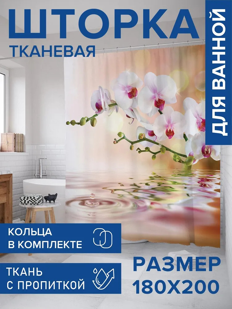 Серия: Нежная орхидея Шторка для ванной 180×200 см выполнена из мягкого и приятного на ощупь высококачественного материала «Сатен» (100% полиэстер) плотностью 80 г/м2. Изделие обработано водоотталкивающей пропиткой, благодаря чему защищает мебель от брызг и влаги. |