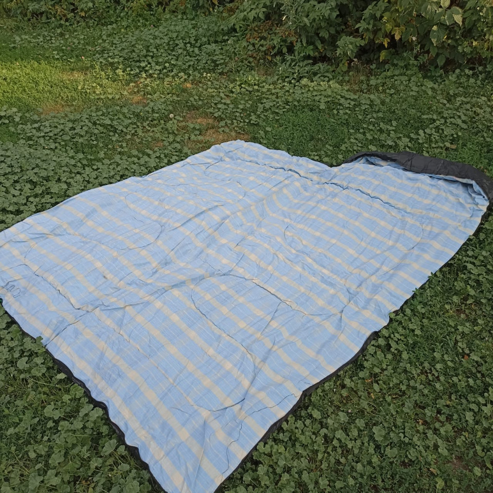 Внешняя ткань спальника имеет водоотталкивающие свойства, поэтому при ночевке под открытым небом в нем вам даже не страшен легкий дождик. Система застежек спального мешка дает возможность сделать вентиляционные отверстия в любом месте или полностью раскрыть его, превратив в одеяло. Наполнитель спального мешка не сваливается после длительного использования.