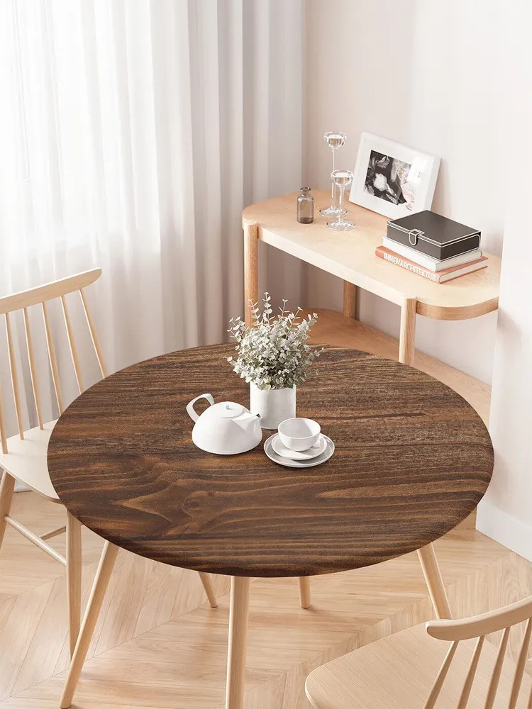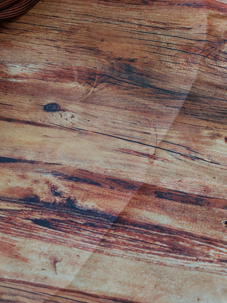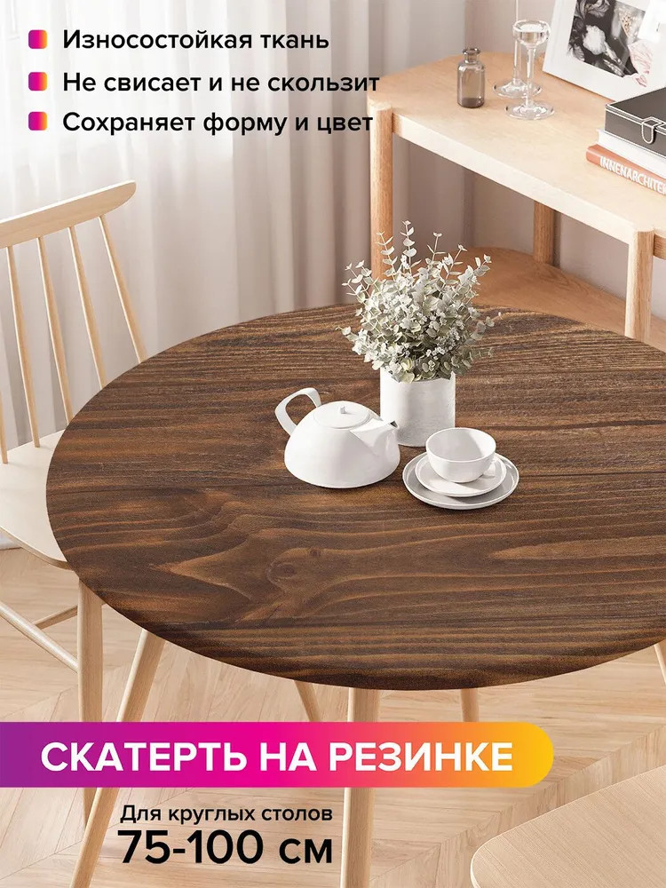 Расцветка не соответствует заявленной. Единственно, что древесная текстура и всё, а так пестрит оранжевым, такую бы не взяла, но сдавать не стала, так как не сама забирала товар. Подошла впритык на стол диаметром 1 метр. На 120см будет мала.