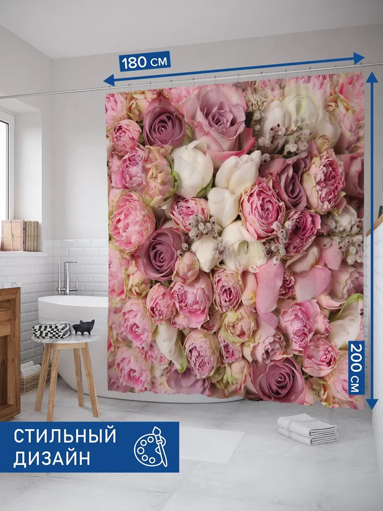 JoyArty Штора для ванной «Розовый букет»-20% +95