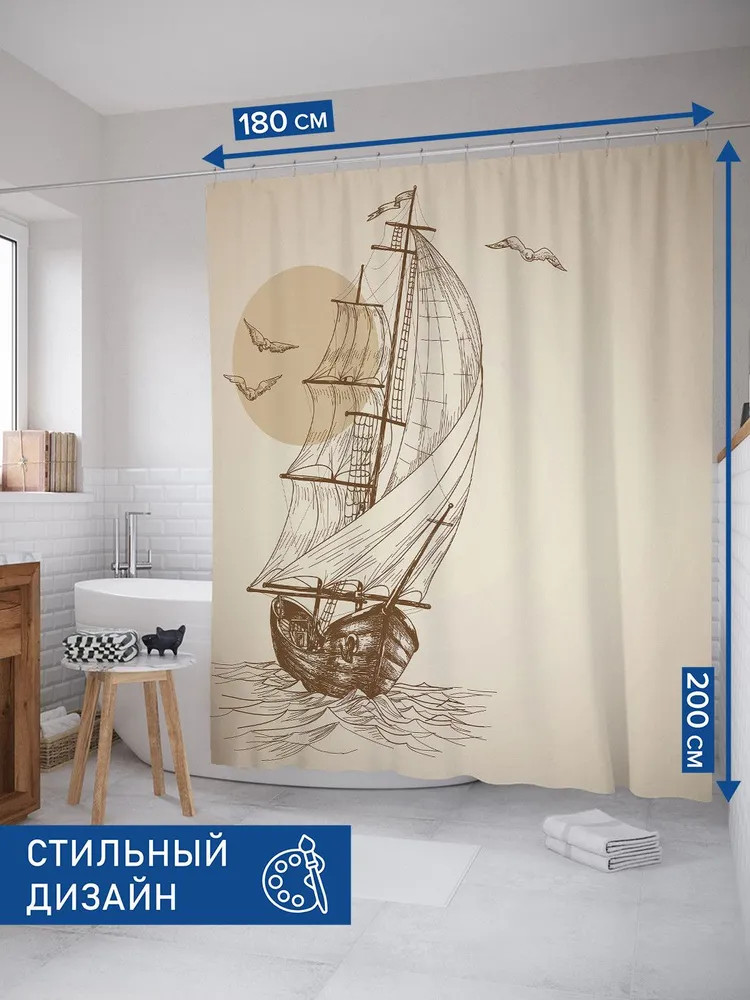 JoyArty Штора для ванной «Начертания корабля в море»-30% +83