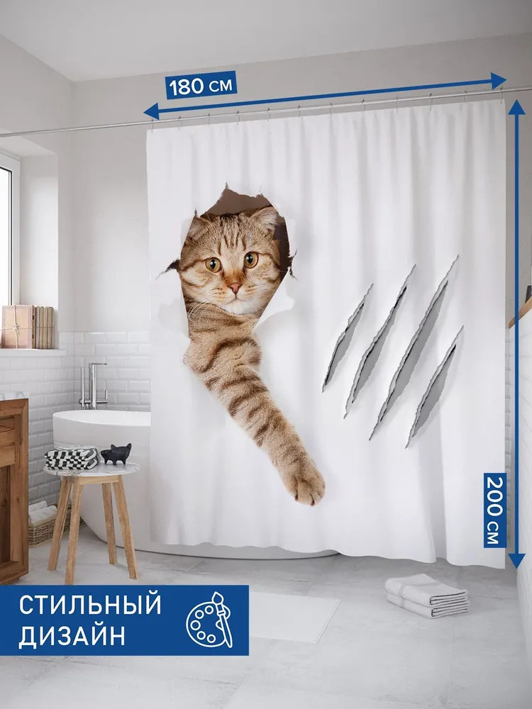 JoyArty Штора для ванной «Кот с царапиной»-30% +83 рисунок качество оригинальный принт