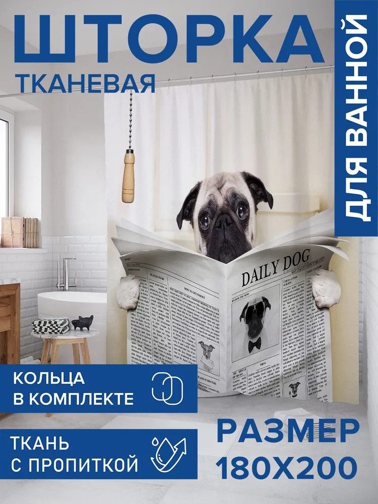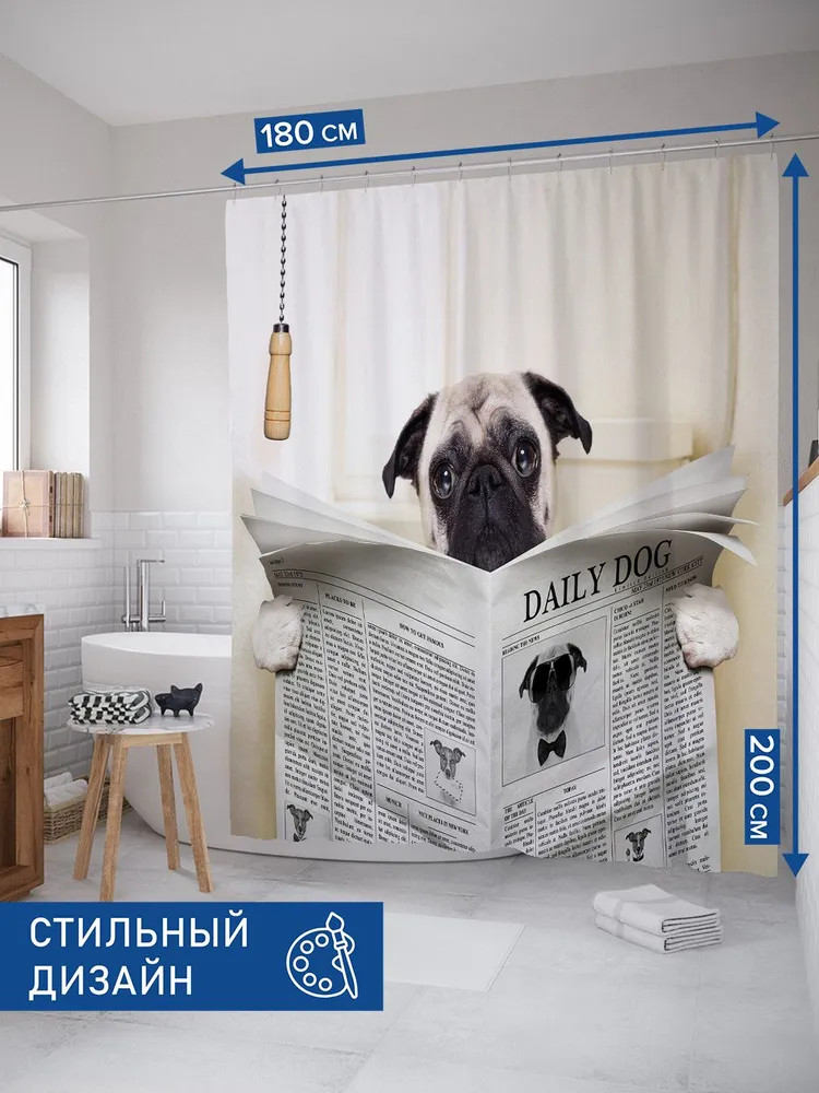 Шторка для ванной 180×200 см выполнена из мягкого и приятного на ощупь высококачественного материала «Сатен» (100% полиэстер) плотностью 80 г/м2. Изделие обработано водоотталкивающей пропиткой, благодаря чему защищает мебель от брызг и влаги. Не нуждается в утяжелителях и магнитах. Ткань прекрасно расправляется под собственным весом, не прилипает и не сминается во время использования. Отверстия под крючки не имеют люверсов/утяжелителей и обработаны оверлоком. Современная текстильная штора для душа комплектуется 12 крючками/кольцами из пластика, предназначенных для штанги и карниза. Рисунок нанесен на внешнюю сторону изделия с помощью сублимационной печати. Такие принты не боятся влаги, не смываются под горячей водой и не потускнеют со временем. Обратная сторона изделия — белая. С внутренней стороны по краю шторы присутствует цветная полоса и штрихкод, что является обязательной частью товара. Без нее корректная печать и идентификация невозможна.