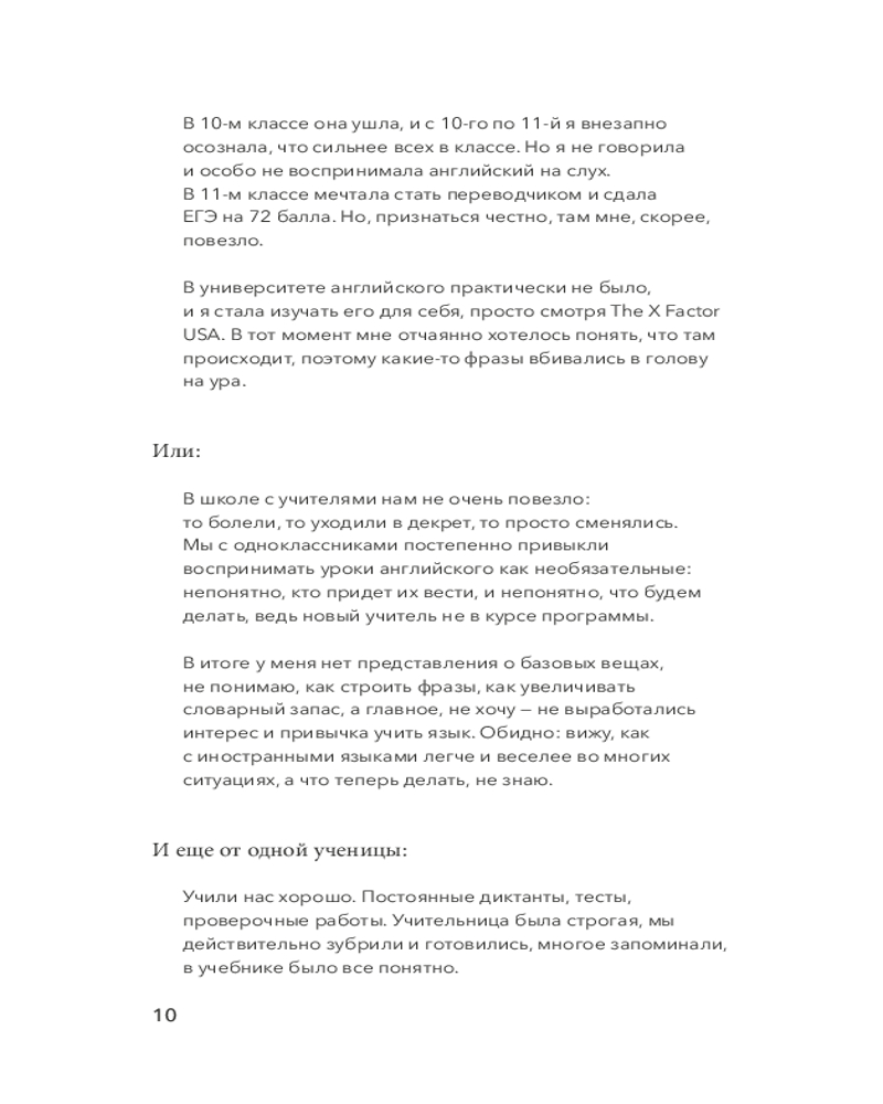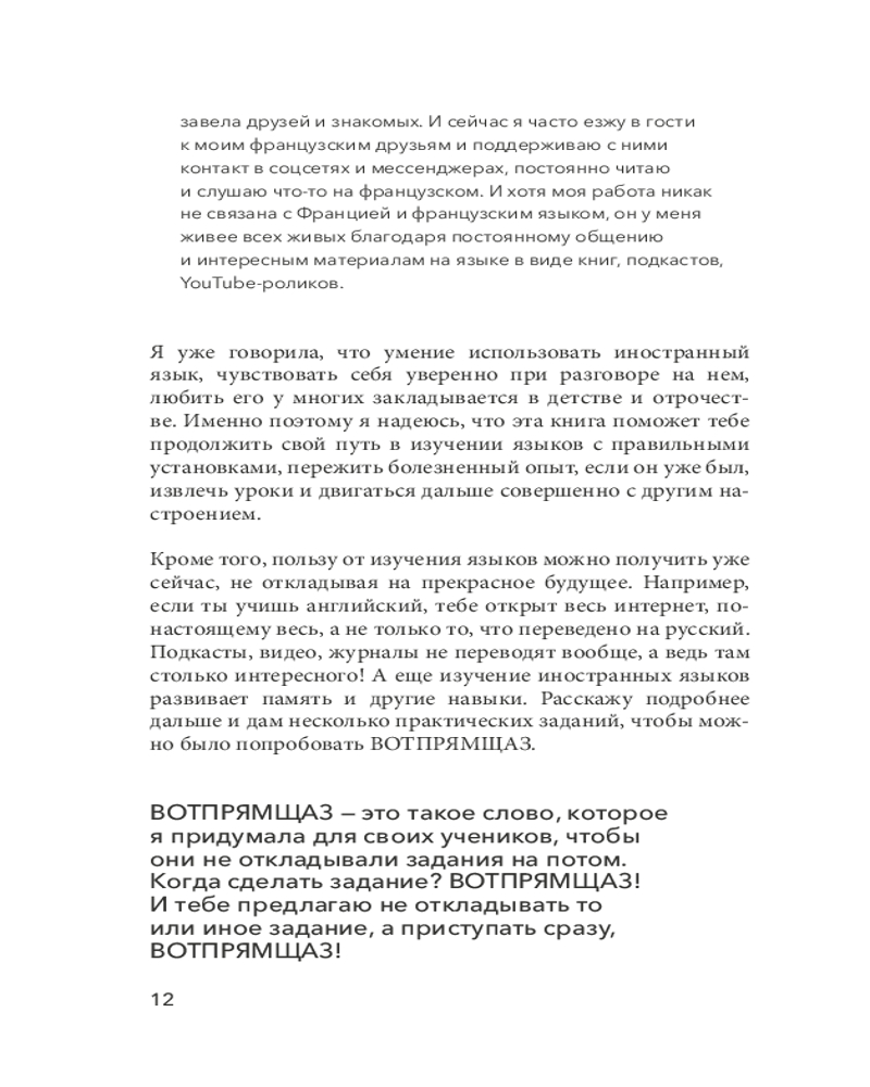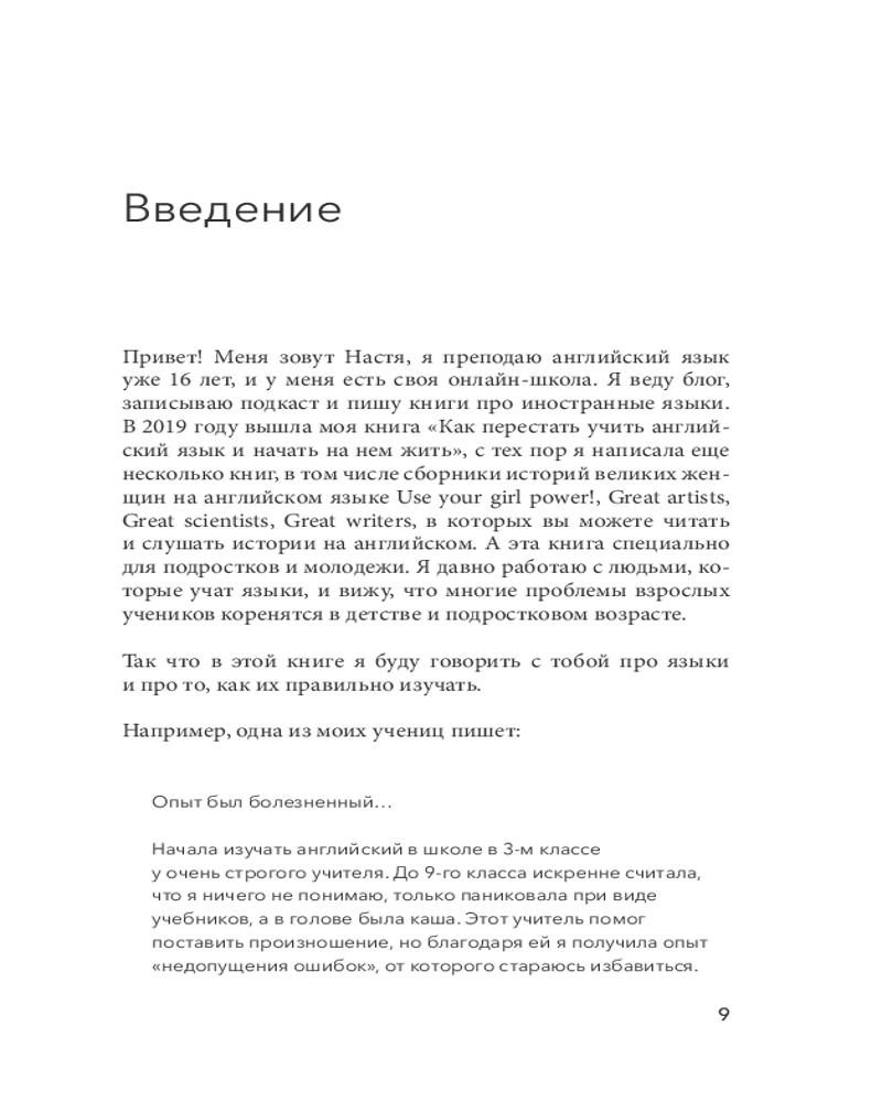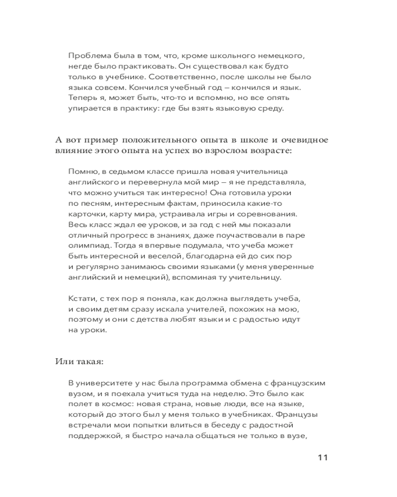 «Иностранный язык — это как вторая жизнь: ты живешь не только на русском, но еще и, например, на английском. Это ужасно интересно. Антон Павлович Чехов говорил: «Сколько языков ты знаешь — столько раз ты человек». Кстати, Чехов судил по своему горькому опыту: сам он языки не знал и в поездках по миру очень комплексовал».