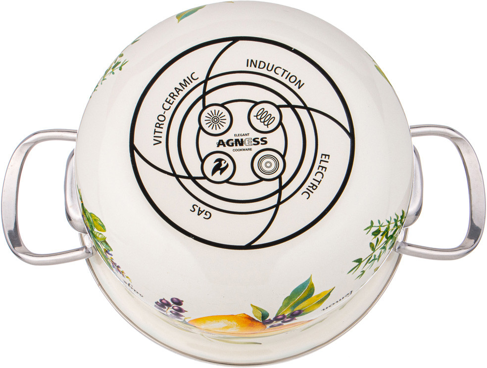 Agness Набор кастрюль с крышками «Секретные ингредиенты»В данный момент этот товар отсутствует в продаже. Возможно, у нас найдется аналогичный или похожий товар здесь. Серия: Секретные ингредиенты Многие профессиональные повара и домохозяйки выбирают эмалированную посуду. И это не удивительно. Эмалированная посуда обладает целым рядом преимуществ. Эмалированная посуда не требует особого ухода и легко моется. На поверхности эмалированной посуды не остается запаха пищи. Эмалированная посуда гигиенична — не удерживает болезнетворных бактерий и микробов. Соответственно в такой посуде можно не только готовить, но и хранить различные блюда, причем достаточно длительное время. Стильный и нежный декор эмалированной посуды украсит любую кухню. Посуда проходит 3 этапа обжига, эта технология позволяет сохранить яркость расцветок деколи, а также придает прочность эмалированной посуде. Все деколи наносятся вручную, а затем обжигаются при температуре около 800°С. |