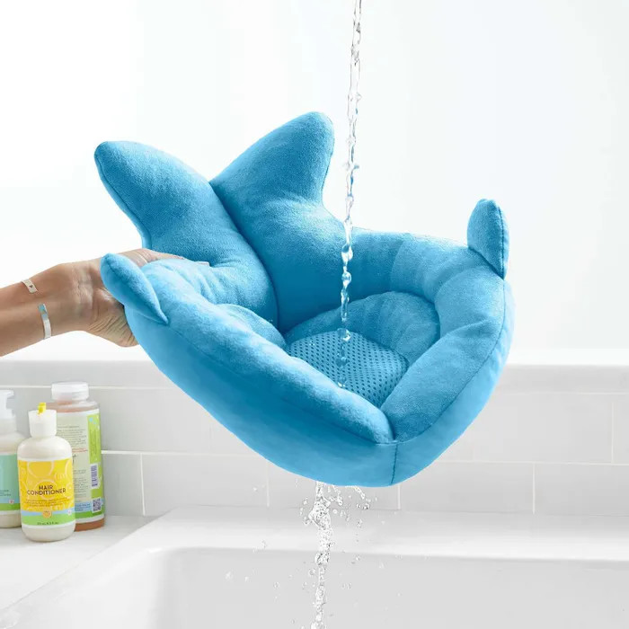 Объемный матрасик — с эластичной поверхностью, не повреждающей нежную кожу ребенка. Центральная часть выполнена из сетчатого материала, легко пропускающего воду. Это позволяет ополоснуть малыша чистой водой, не снимая его с матрасика. Во время купания ребенка родители получают свободу действий, так как малыша не нужно дополнительно поддерживать. Одновременно с купанием можно играть и общаться с ребенком. Матрасик оснащен петелькой для подвешивания — после использования достаточно повесить его на крючок. Быстросохнущий материал. Дно из сетки пропускает воду. Машинная стирка.
