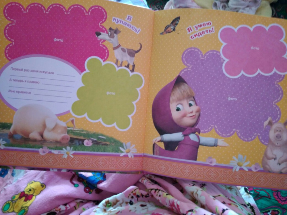 Очень яркий и красочный альбом, большой и квадратный, обложка твердая, страницы хорошие, взяла для будущей племянницы, не терпится сделать первые записи))