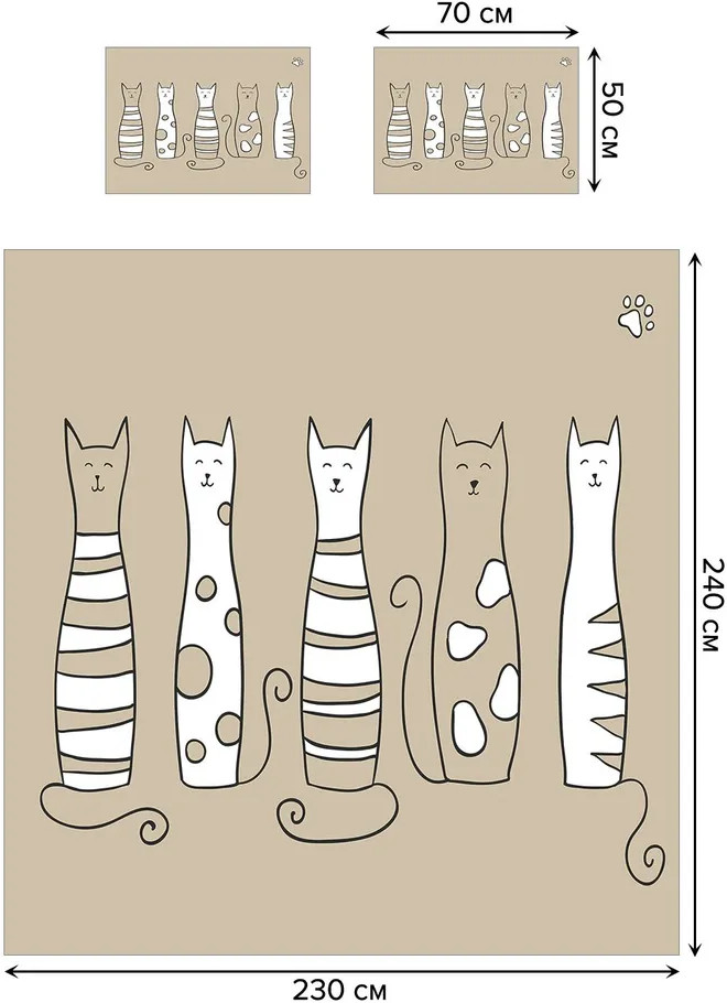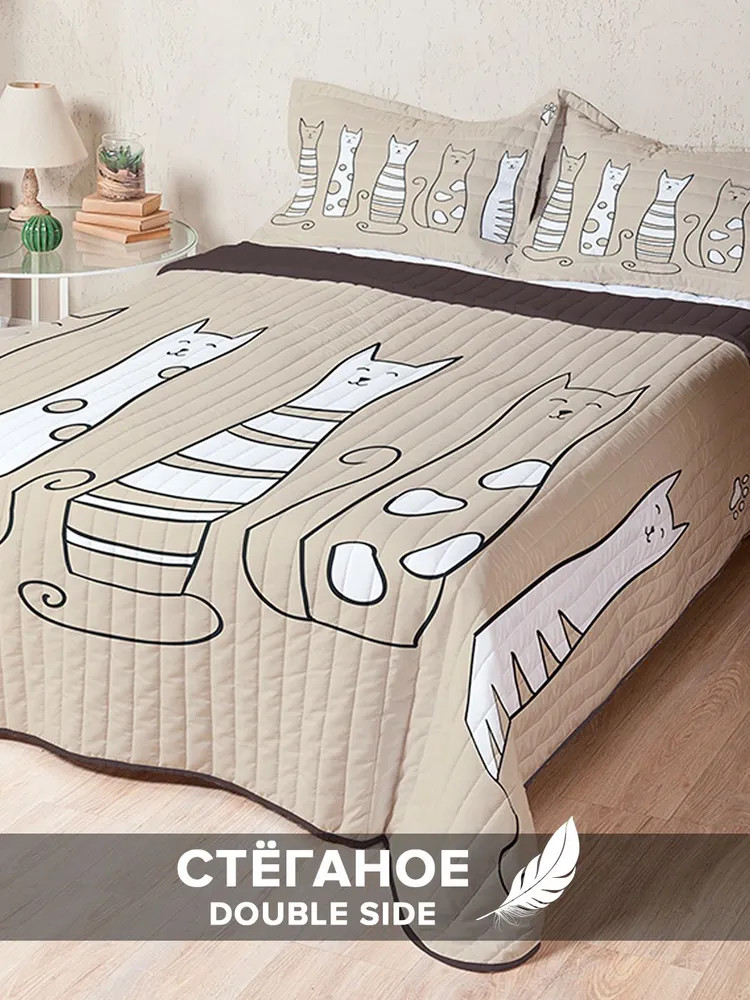 Ambesonne Покрывало стеганое с наволочками «Добрые коты»