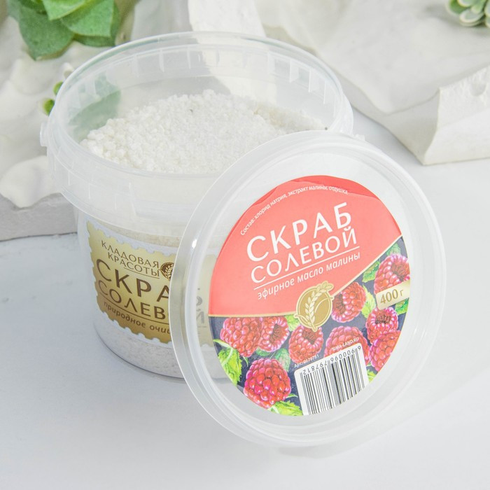 Кладовая красоты Скраб для тела солевой с эфирным маслом малины