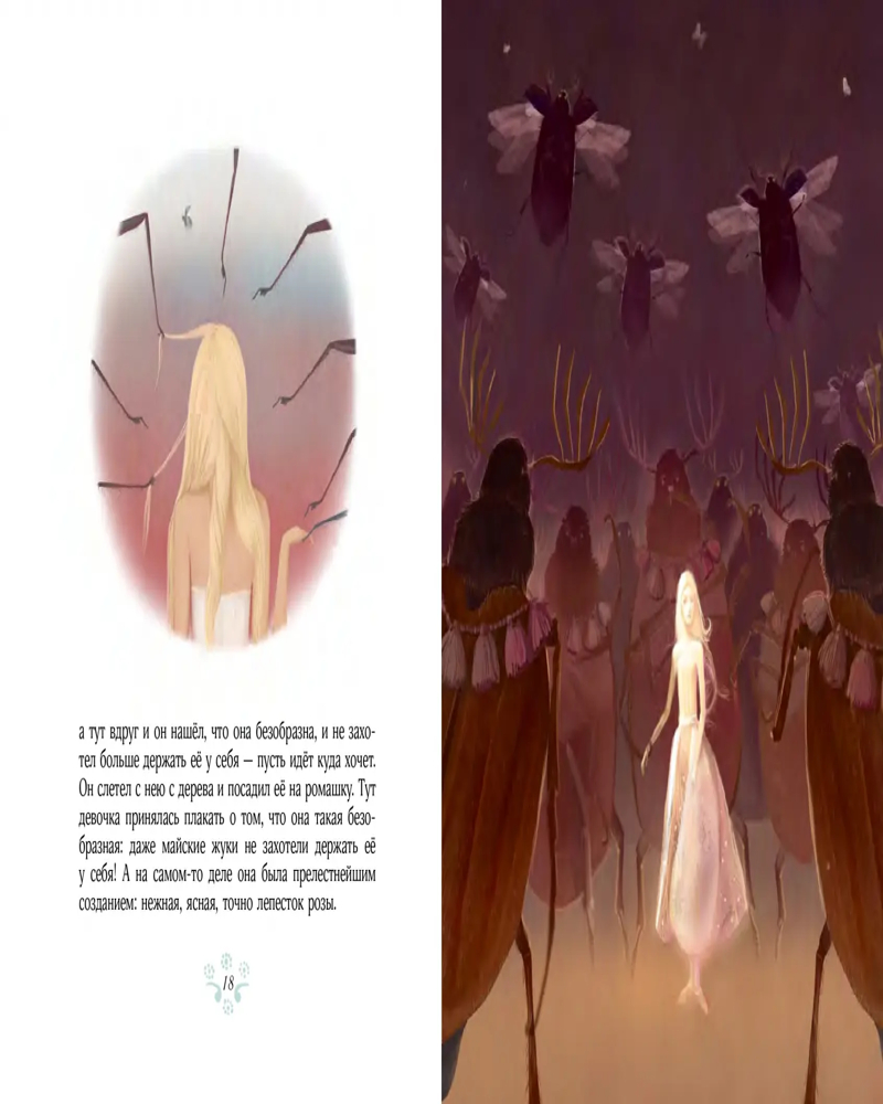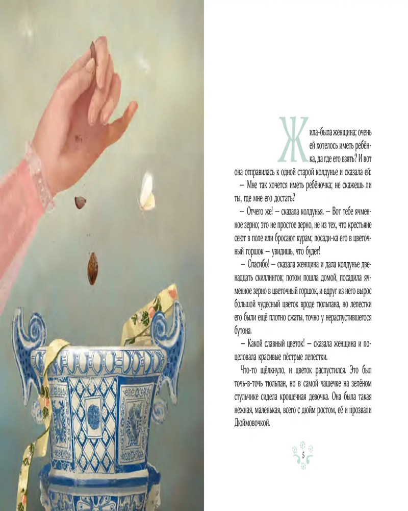 Серия: Волшебники кисти Ханс Кристиан Андерсен придумал сказку о Дюймовочке почти 200 лет назад, но и сегодня она является одной из самых известных и любимых историй в мире. Дюймовочке в жизни выпало много испытаний, но благодаря своему доброму сердцу она преодолевает все невзгоды и обретает счастье в Стране Цветов, становится Королевой Эльфов. |