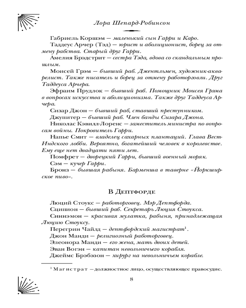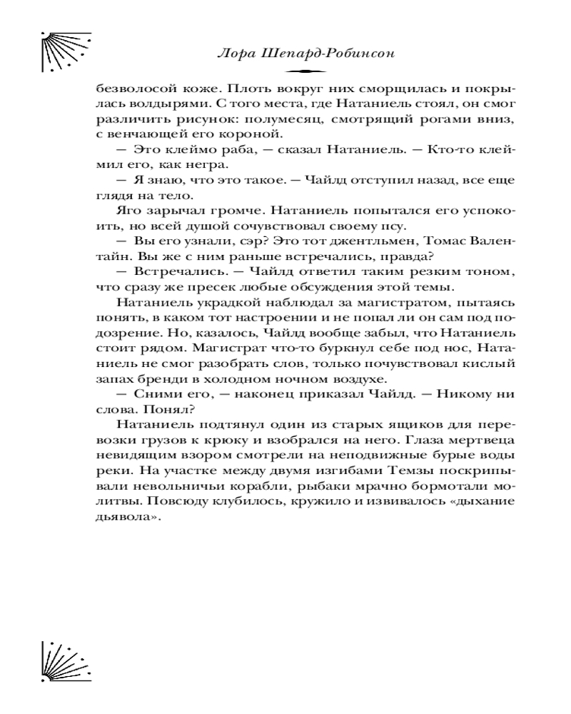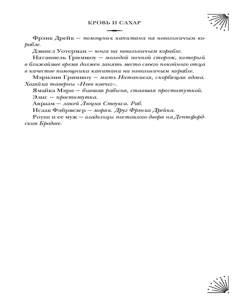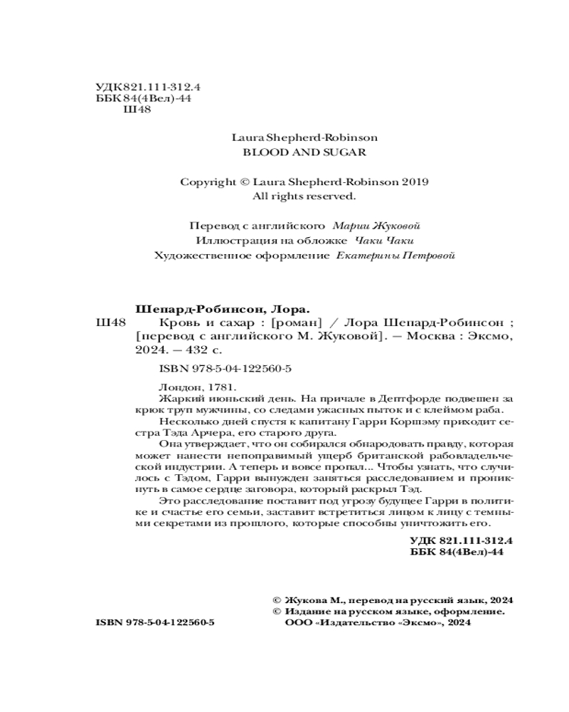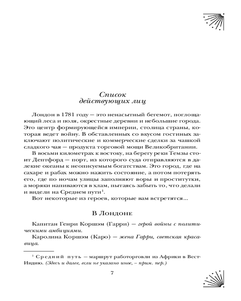 Жаркий июньский день. На причале в Дептфорде подвешен за крюк труп мужчины, со следами ужасных пыток и с клеймом раба. Несколько дней спустя к капитану Гарри Коршэму приходит сестра Тэда Арчера, его старого друга. Она утверждает, что он собирался обнародовать правду, которая может нанести непоправимый ущерб британской рабовладельческой индустрии. А теперь и вовсе пропал... Чтобы узнать, что случилось с Тэдом, Гарри вынужден заняться расследованием и проникнуть в самое сердце заговора, который раскрыл Тэд. Это расследование поставит под угрозу будущее Гарри в политике и счастье его семьи, заставит встретиться лицом к лицу с темными секретами из прошлого, которые способны уничтожить его. |