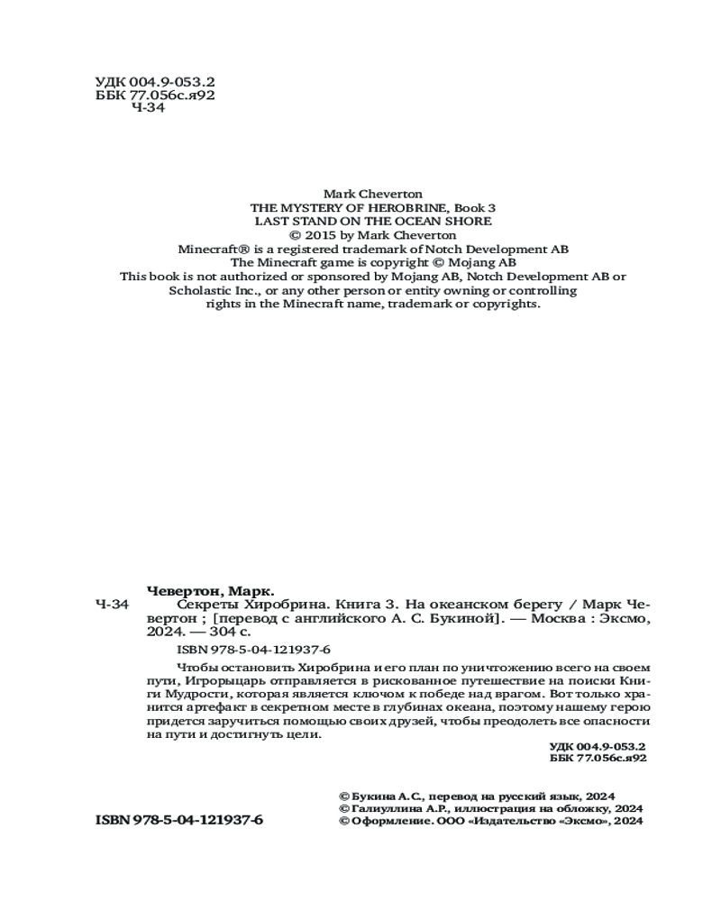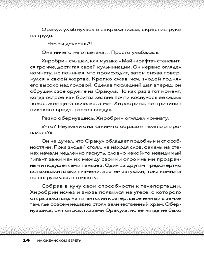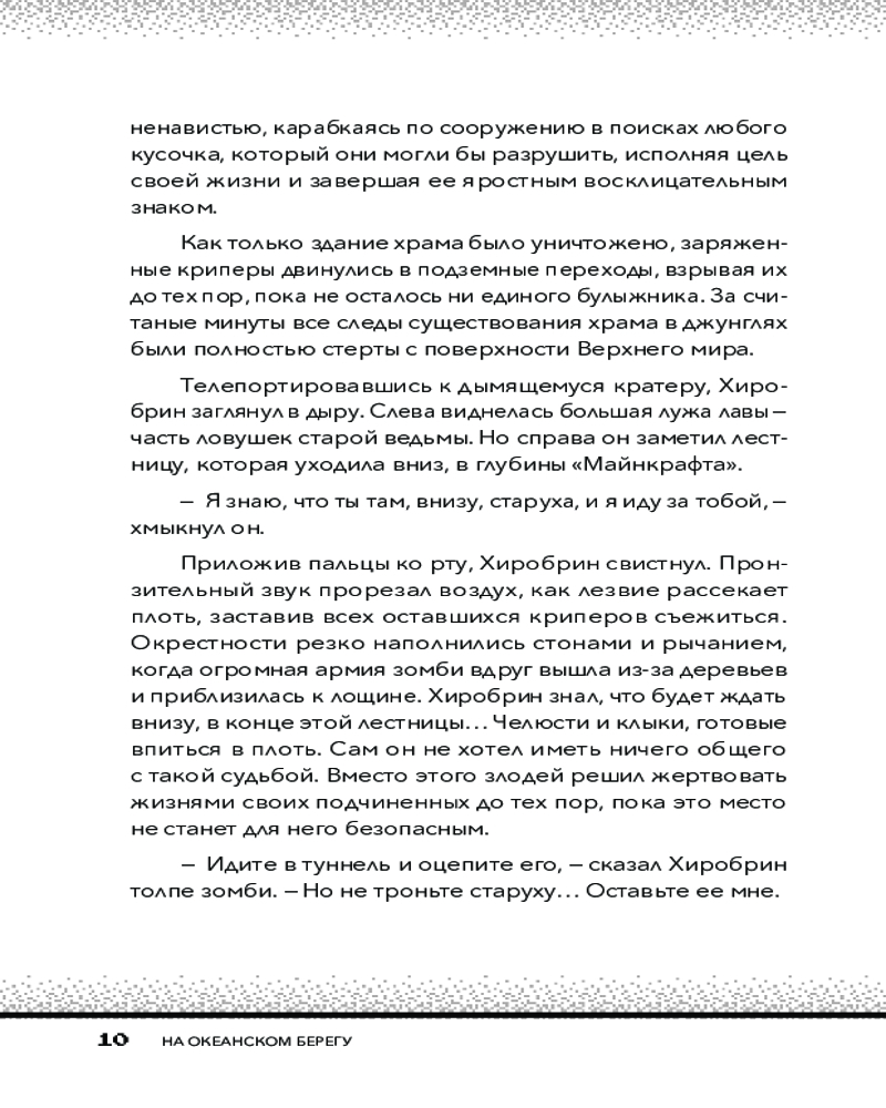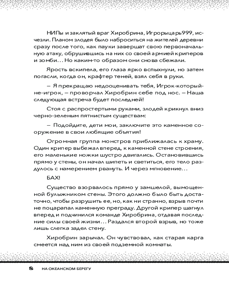 💳 Оплатить за товар можно при получении 🇰🇿 Есть бесплатная доставка по Казахстану от 1 дня 🎁 Копите бонусы с каждой покупки Серия: Майнкрафт. Секреты Хиробрина Хиробрин собирает всех монстров Майнкрафт на одном сервере, планируя раз и навсегда расправиться с Игрорыцарем999 и его друзьями. Они намерены уничтожить все на своем пути и заставить Игрока-который-не-игрок сдаться. Тем временем перед Игрорыцарем стоит важная задача — отыскать в океанских глубинах Книгу Мудрости, которая является ключом к победе над Хиробрином. Вместе с друзьями герой отправляется в увлекательное и опасное путешествие, сражаясь с ужасными существами, охраняющими секретное подводное логово, в котором таится необходимый артефакт. |