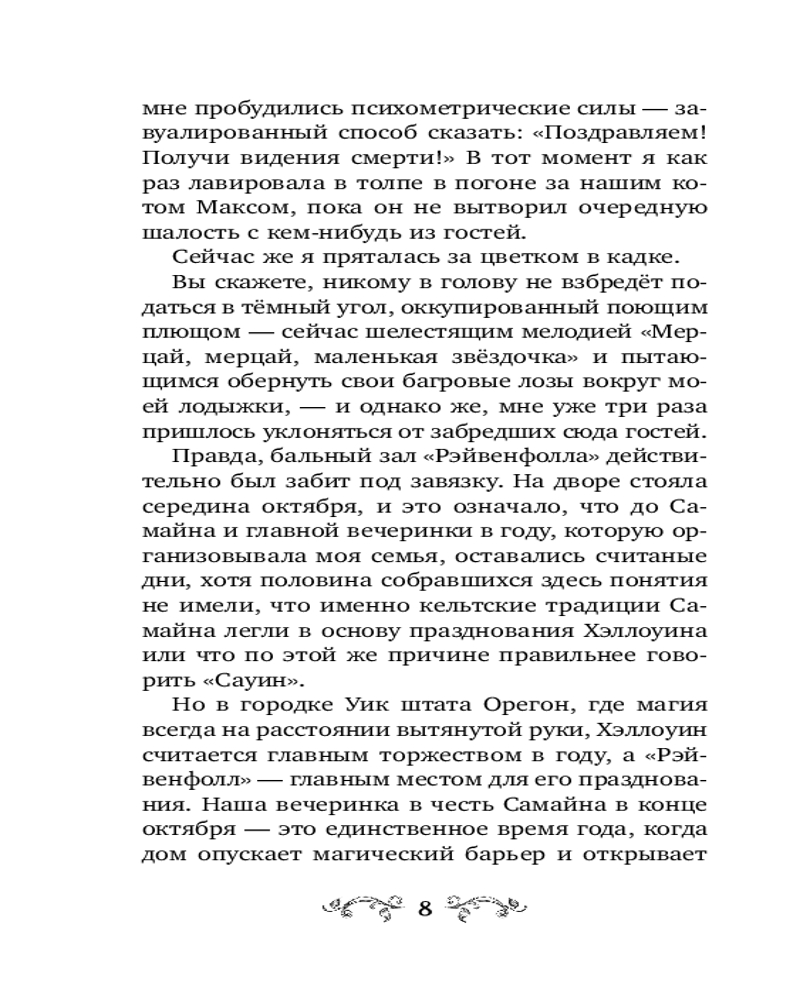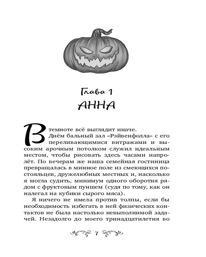 Гостиница «Рэйвенфолл» — приют для всех, кто хочет вдоволь надышаться лесным воздухом, насладиться уютом и пряными напитками, а также спрятаться от могущественных врагов из Потустороннего мира. Анна уже привыкла, что её семья владеет самым необычным отелем на свете. Но когда на их пороге появляется загадочный мальчик Колин, Анна понимает: грядёт что-то очень таинственное и страшное... Ведь именно Колин был в её последнем видении, в котором умерло целых два человека! Кто же этот парнишка во фланелевой рубашке с пятнами крови? Что он здесь ищет? И почему кажется, что ему очень-очень нужна помощь? |
