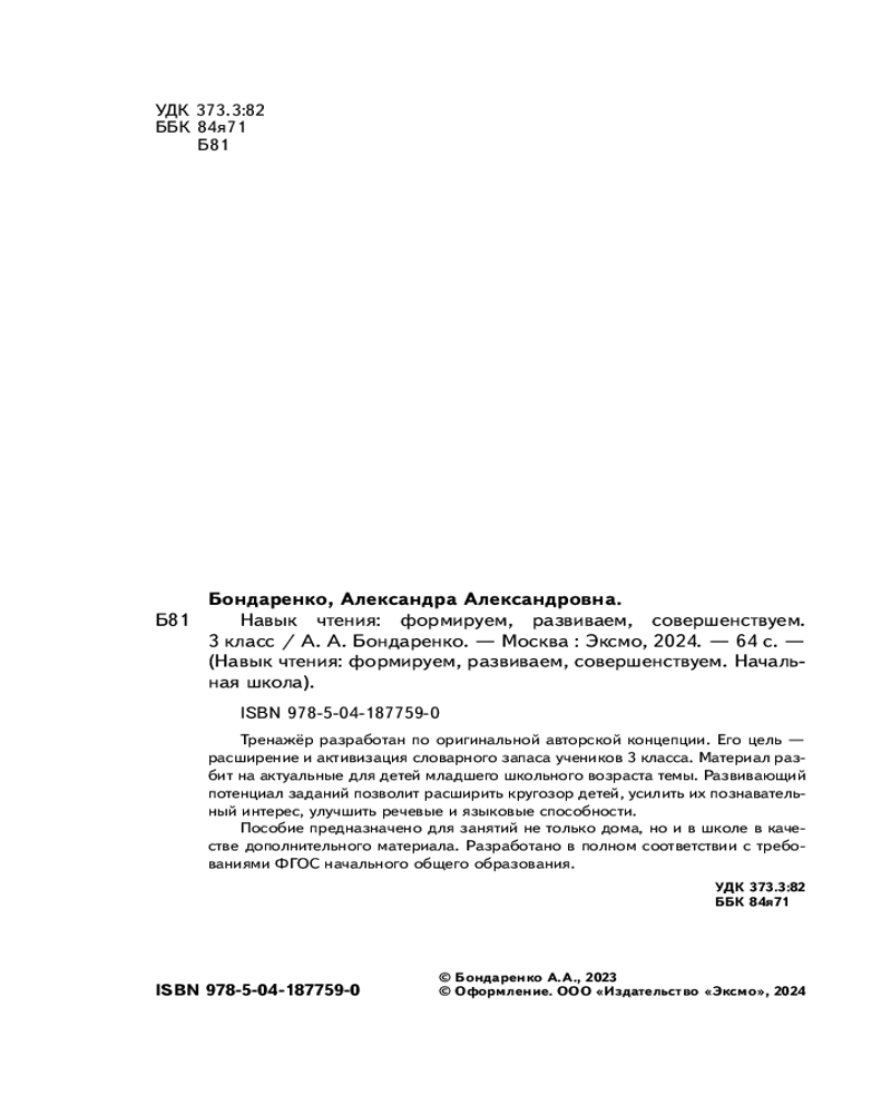 Навык чтения: формируем, развиваем, совершенствуем. 3 классАлександра Александровна Бондаренко +8