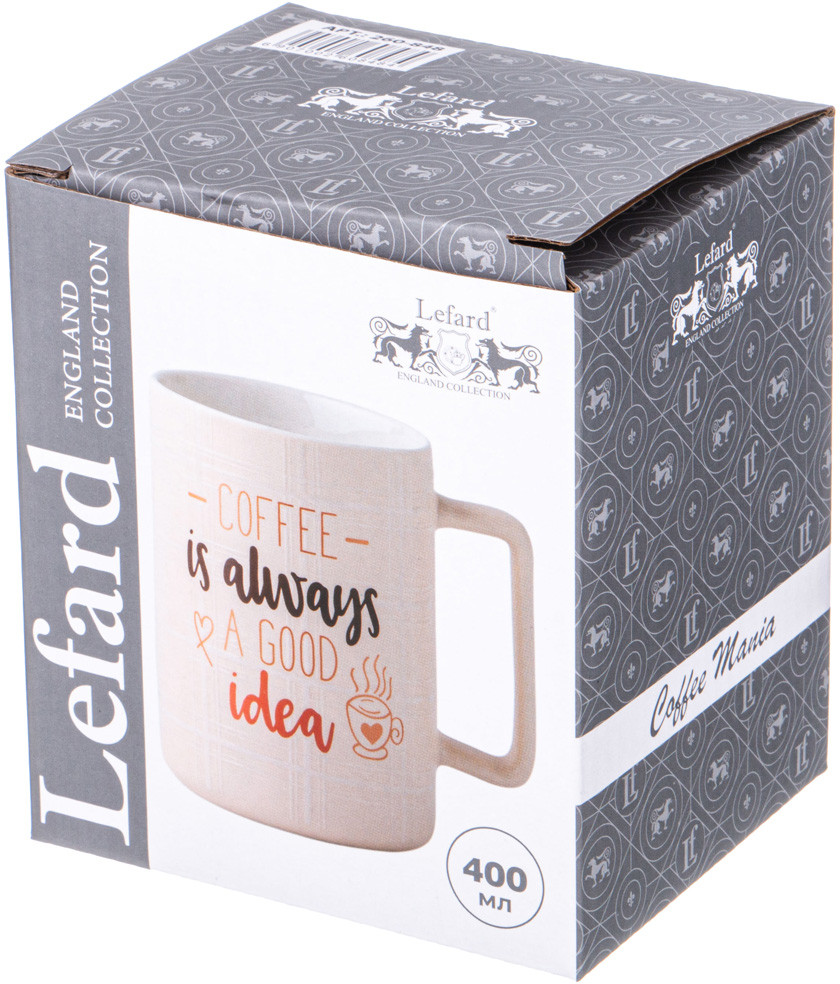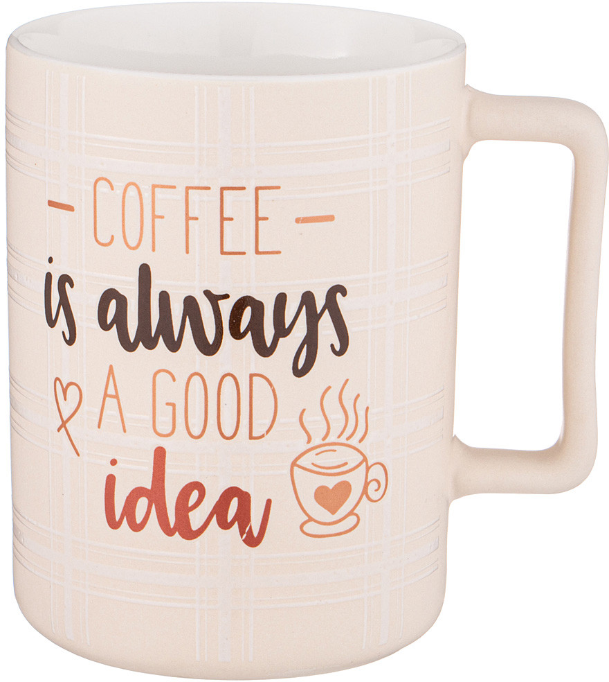 Кружка с лаконичным дизайном и надписью «Кофе — всегда хорошая идея!» имеет удобную ручку и отличный объем. Кружка изготовлена из качественного фарфора. Отличный выбор для подарка. Продукция сертифицирована и безопасна для контакта с пищевыми продуктами. Можно ставить в микроволновую печь.