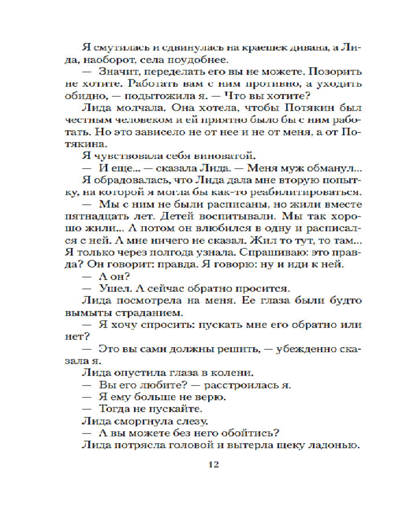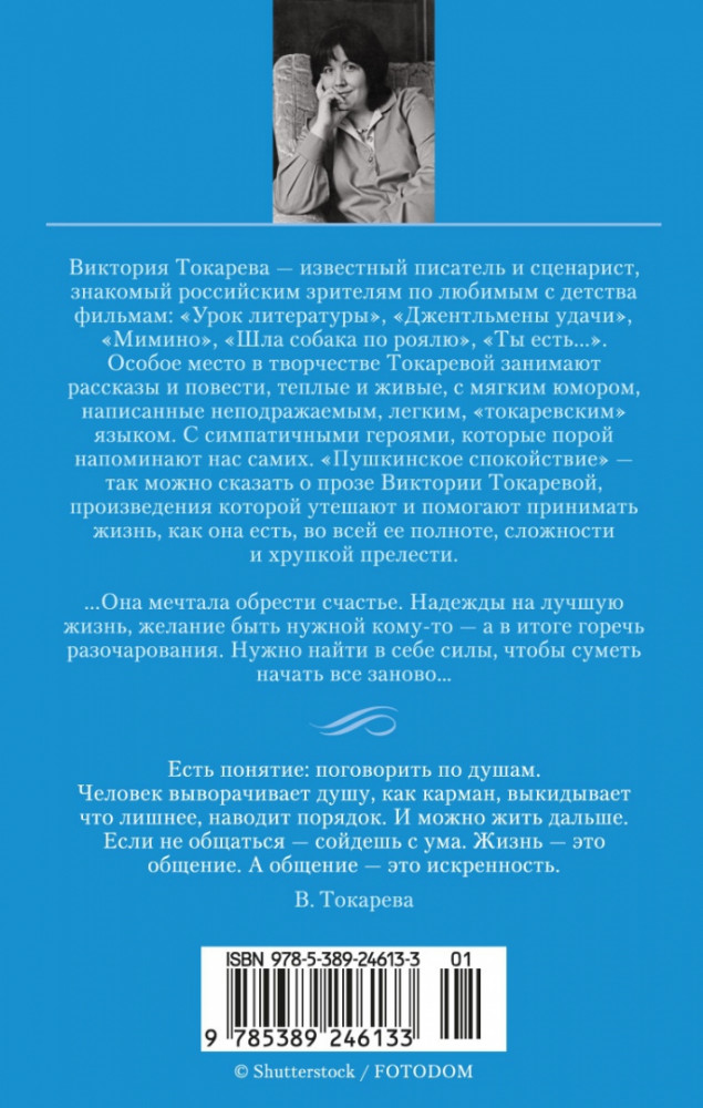 Извинюсь. Не расстреляют. Сказать — не сказатьВ данный момент этот товар отсутствует в продаже. Возможно, у нас найдется аналогичный или похожий товар здесь. Серия: Виктория Токарева. Новое оформление Виктория Токарева — известный писатель и сценарист, знакомый российским зрителям по любимым с детства фильмам: «Урок литературы», «Джентльмены удачи», «Мимино», «Шла собака по роялю», «Ты есть...». Особое место в творчестве Токаревой занимают рассказы и повести, теплые и живые, с мягким юмором, написанные неподражаемым, легким, «токаревским» языком. С симпатичными героями, которые порой напоминают нас самих. «Пушкинское спокойствие» — так можно сказать о прозе Виктории Токаревой, произведения которой утешают и помогают принимать жизнь, как она есть, во всей ее полноте, сложности и хрупкой прелести. |
