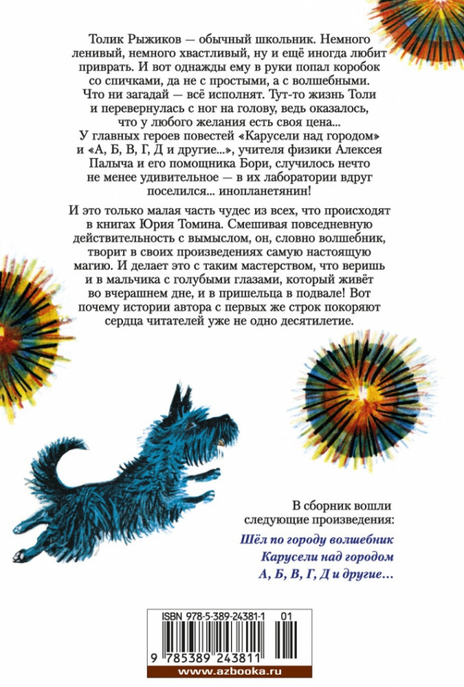 Очень интересные сказочные повести. Читать намного интереснее, чем смотреть фильм. Особенно "Карусели над городом". Фильм по этой истории совсем не понравился. А повесть впервые прочитала в конце 70-х годов в журнале "Пионер", была в восторге, собрала из всех номеров и сшила книжицу, которая до сих пор жива. Теперь и книга есть, чему я очень рада. "Шел по городу волшебник" тоже читать интереснее, чем смотреть фильм. Но фильм в детстве смотрела, тоже нравился. А вот третья повесть, продолжение "Каруселей над городом", особого впечатления не произвела.