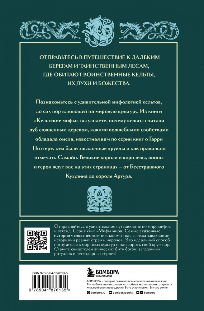 💳 Оплатить за товар можно при получении 🇰🇿 Есть бесплатная доставка по Казахстану 🎁 Копите бонусы с каждой покупки Серия: Мифы мира. Самые сказочные истории человечества Книга «Кельтские мифы» предлагает уникальную возможность погрузиться в магический мир кельтов, где встречаются сказочные существа и великие герои. Вы раскроете секреты древних обрядов и узнаете о пророчествах друидов, о том, где можно встретить фейри и какими волшебными свойствами обладает омела, знакомая каждому по саге о Гарри Поттере. |